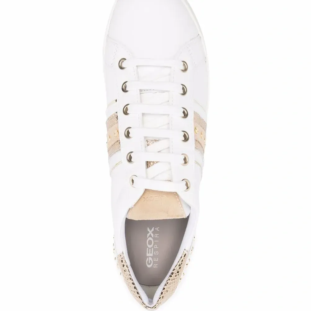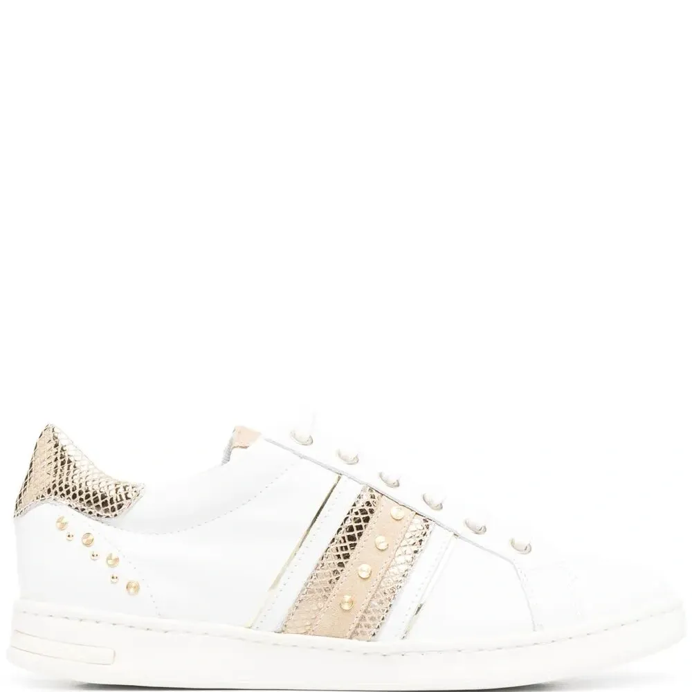Эффект металлик, золотистые заклепки, закругленный носок, шнуровка спереди, стелька с логотипом и плоская резиновая подошва.