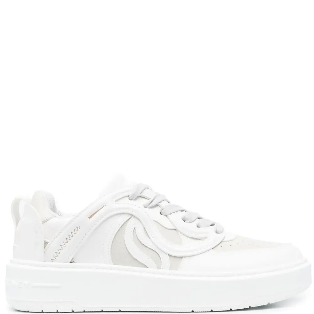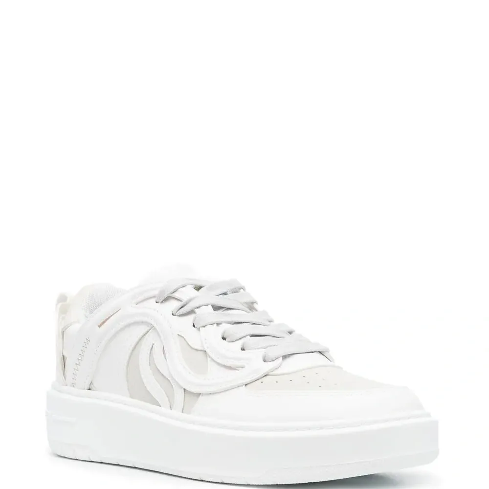 Белый, однотонная расцветка, геометричные вставки, перфорация, язычок с логотипом, петля для подтягивания с логотипом, тисненый логотип сзади, шнуровка спереди и плоская резиновая подошва.