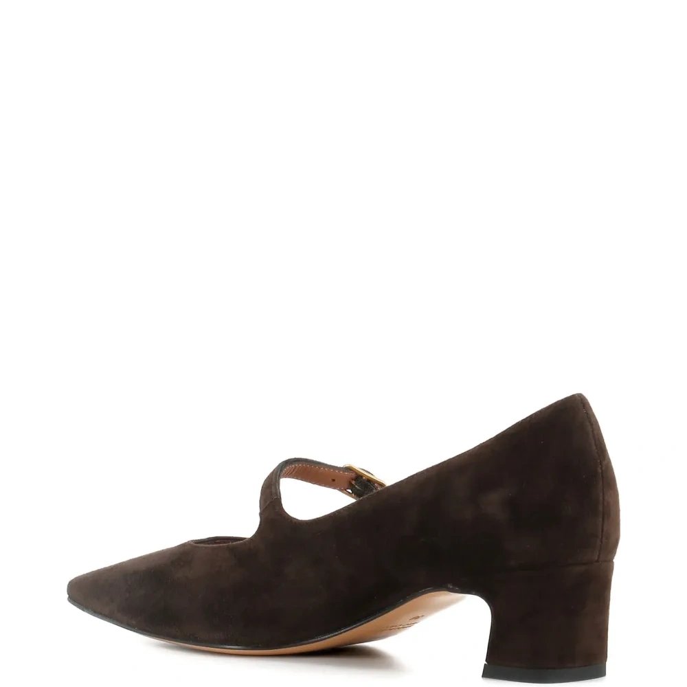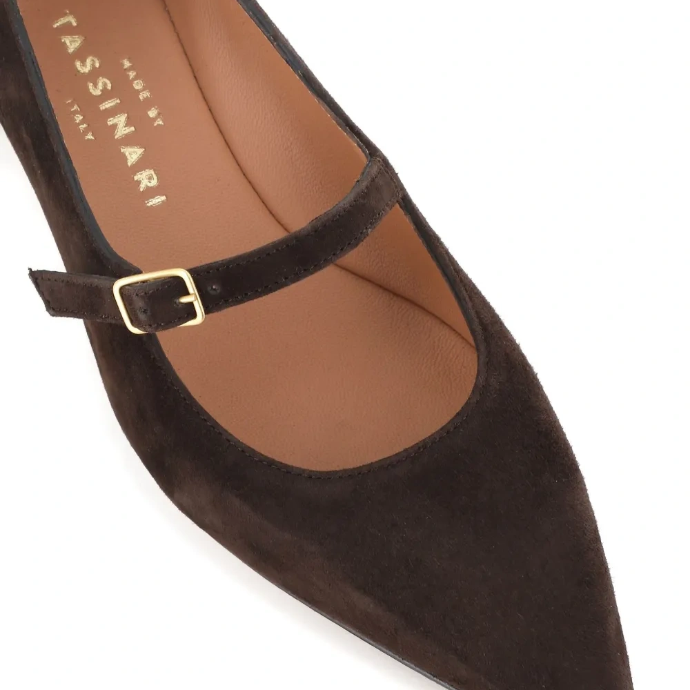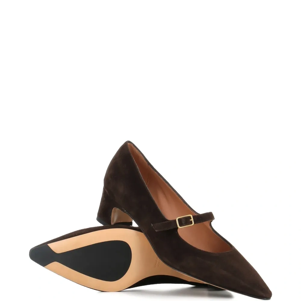 темно-коричневый замша заостренный носок ремешок с пряжкой каблук-«колодка»