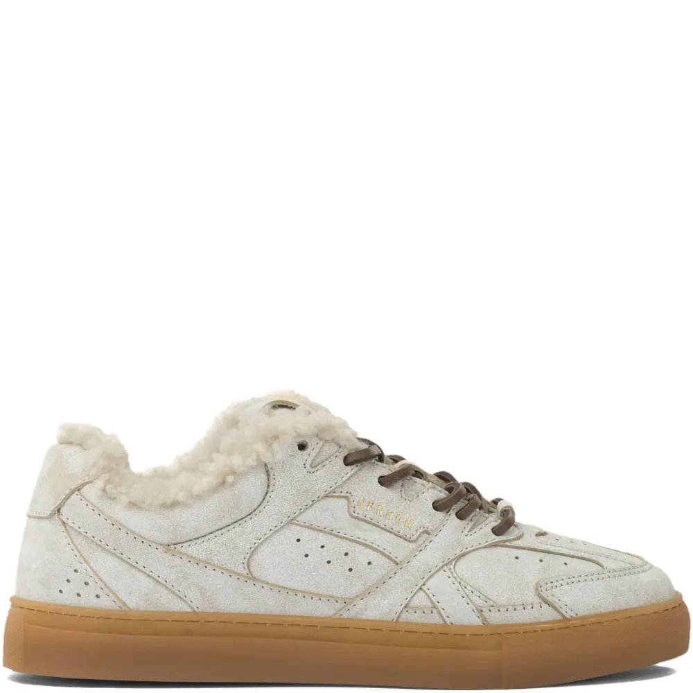 кремовая отделка из меха, шнуровка, резиновая подошва, верх из телячьей кожи, перфорированные детали