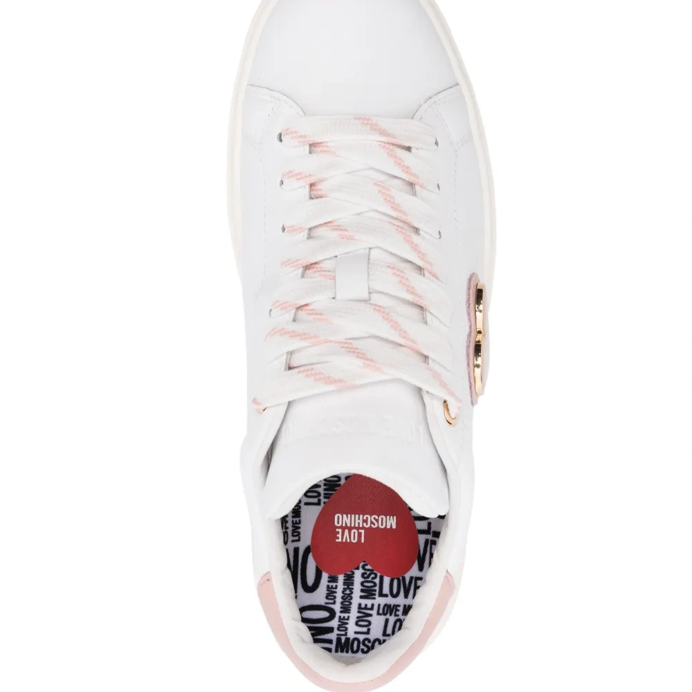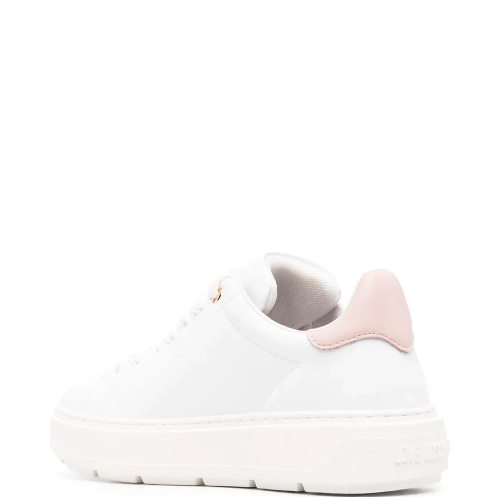 Белый, расцветка Blush Pink, телячья кожа, боковые вставки с логотипом, шнуровка спереди, закругленный носок, логотип на стельке и рифленая резиновая подошва.