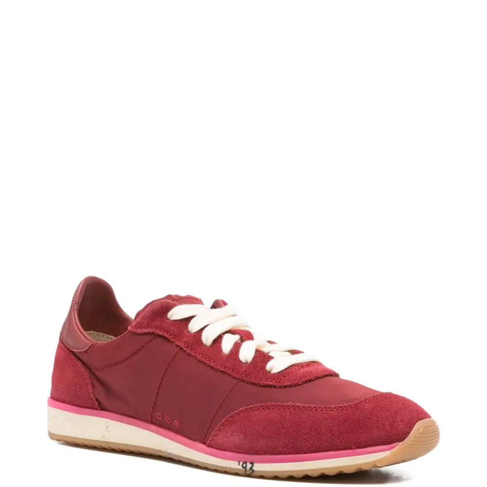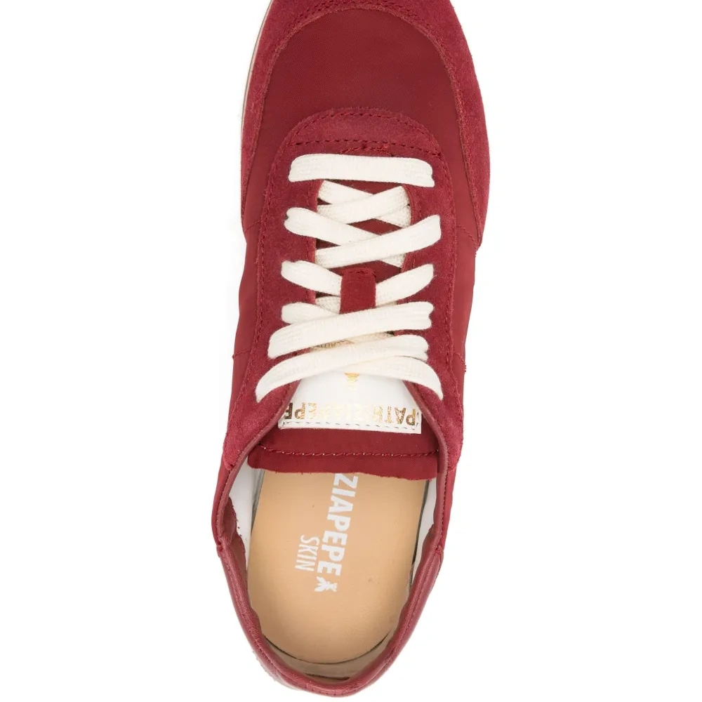 красный вставки из замши кожаный задник плоские шнурки резиновая подошва детали с логотипом