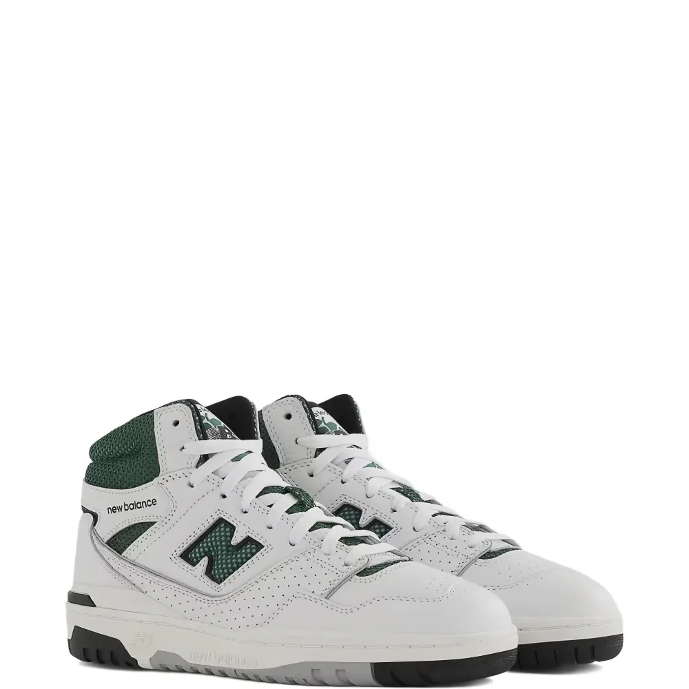 белые кроссовки с зелёными вставками, логотипом, шнуровкой и плоской подошвой