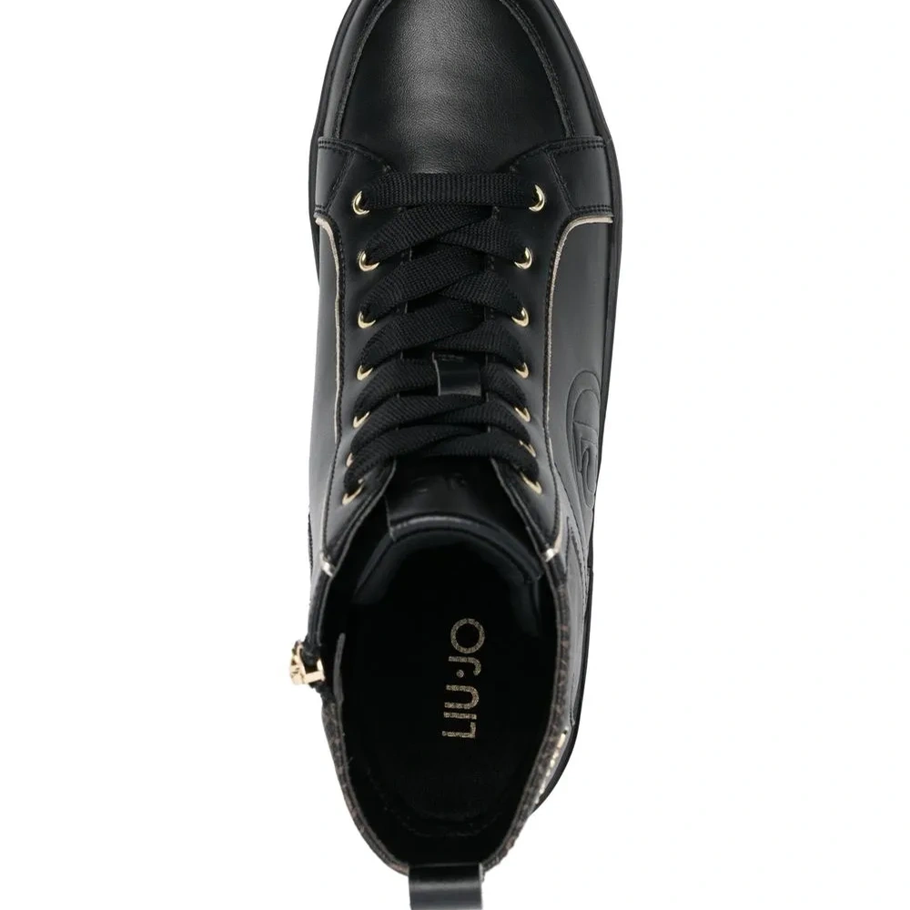 Черный, искусственная кожа, высота по щиколотку, вставки, монограмма, тисненый логотип сбоку, контрастная отделка, миндалевидный носок, шнуровка спереди, стелька с логотипом и плоская резиновая подошва.