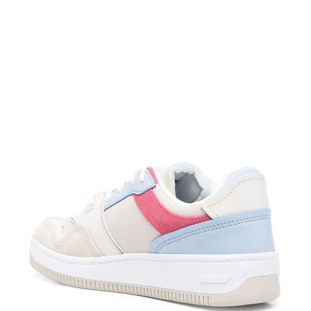 Бежевый, разноцветный, телячья кожа, стиль колор-блок, язычок с логотипом, логотип сбоку, стелька с логотипом, носок с декоративной перфорацией, закругленный носок, шнуровка спереди и массивная резиновая подошва.