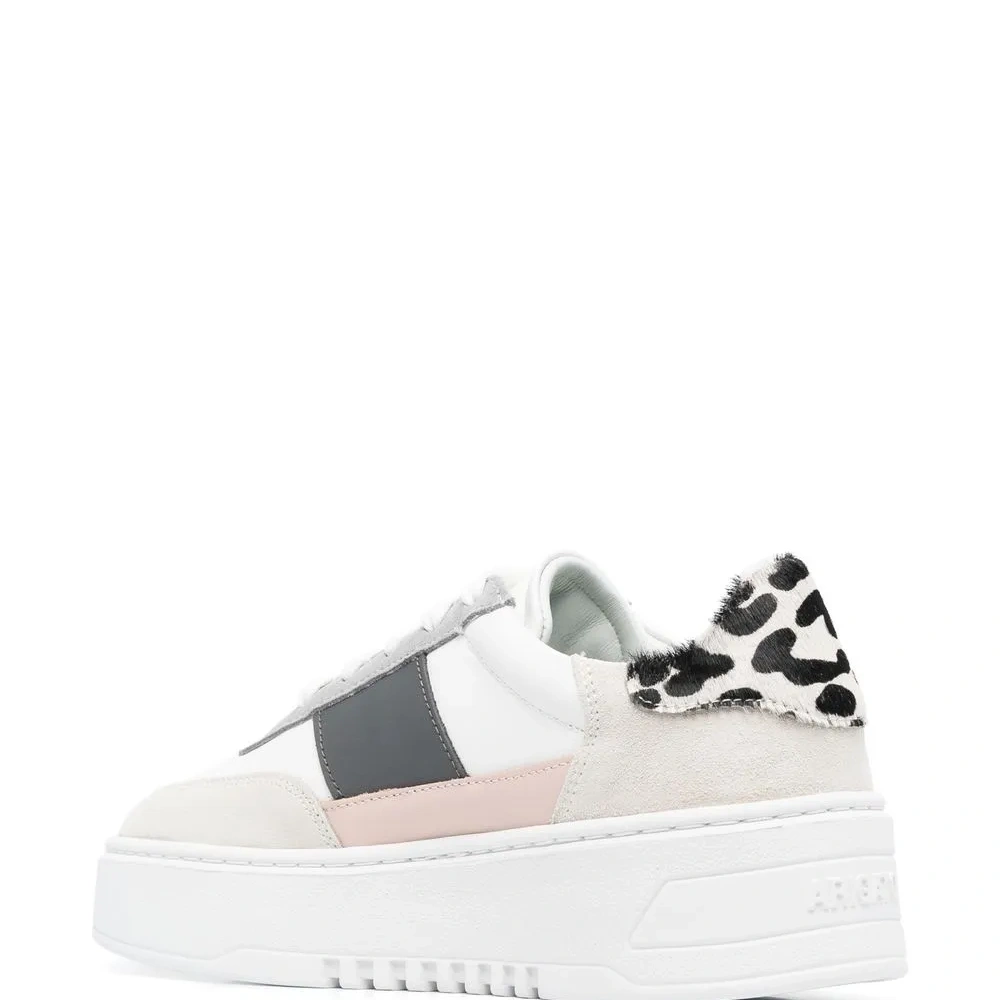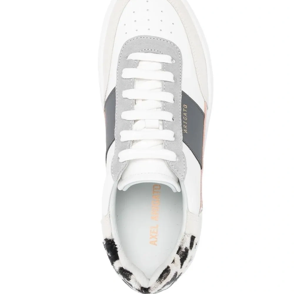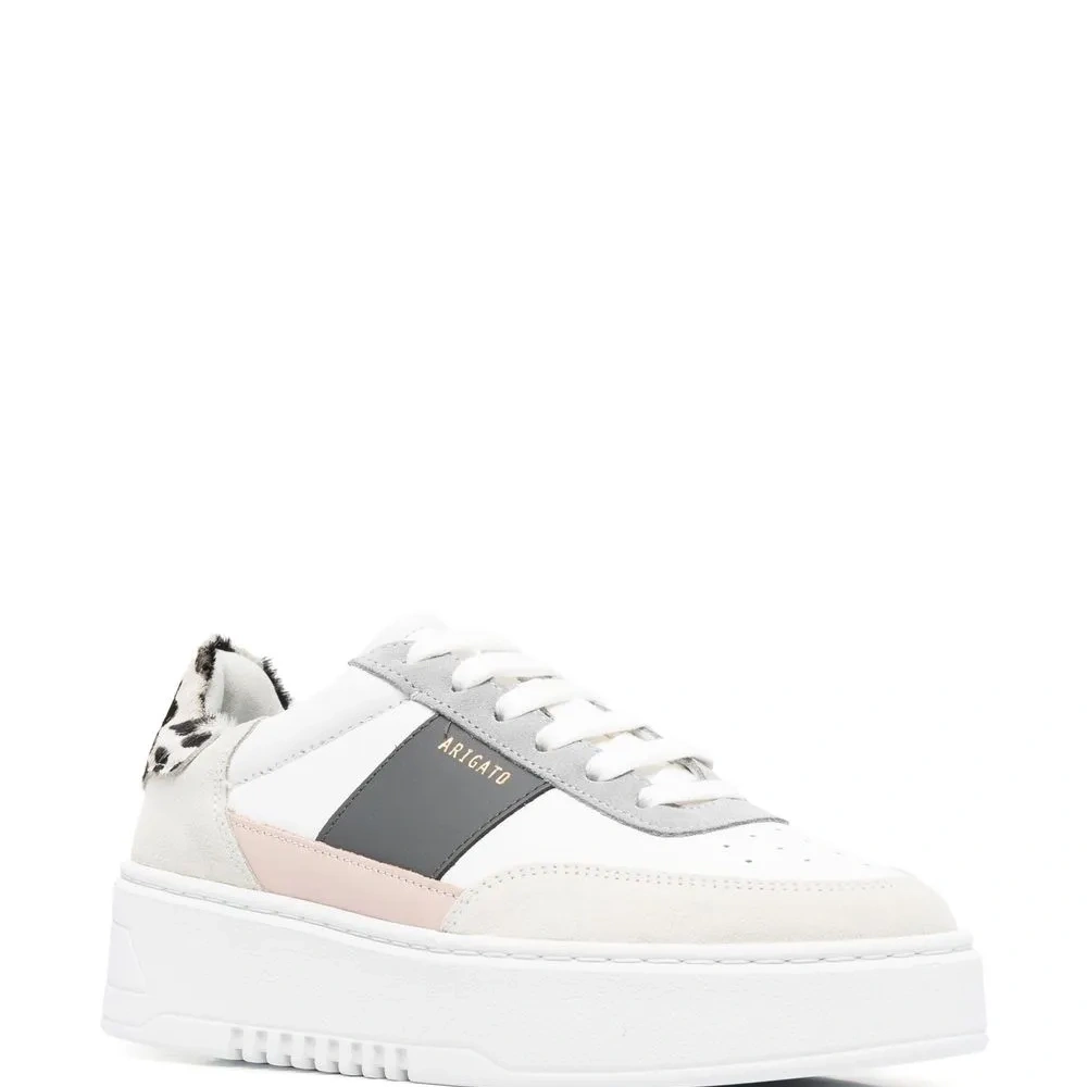 Белый, телячья кожа, логотип, задник с логотипом, шнуровка спереди, закругленный носок и рифленая резиновая подошва.