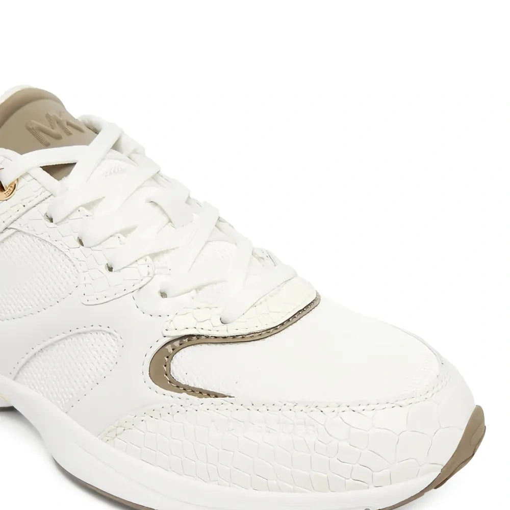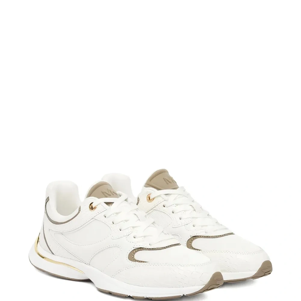 белая имитация зминой кожи, золотистые детали, шнуровка, круглый нос, резиновая подошва
