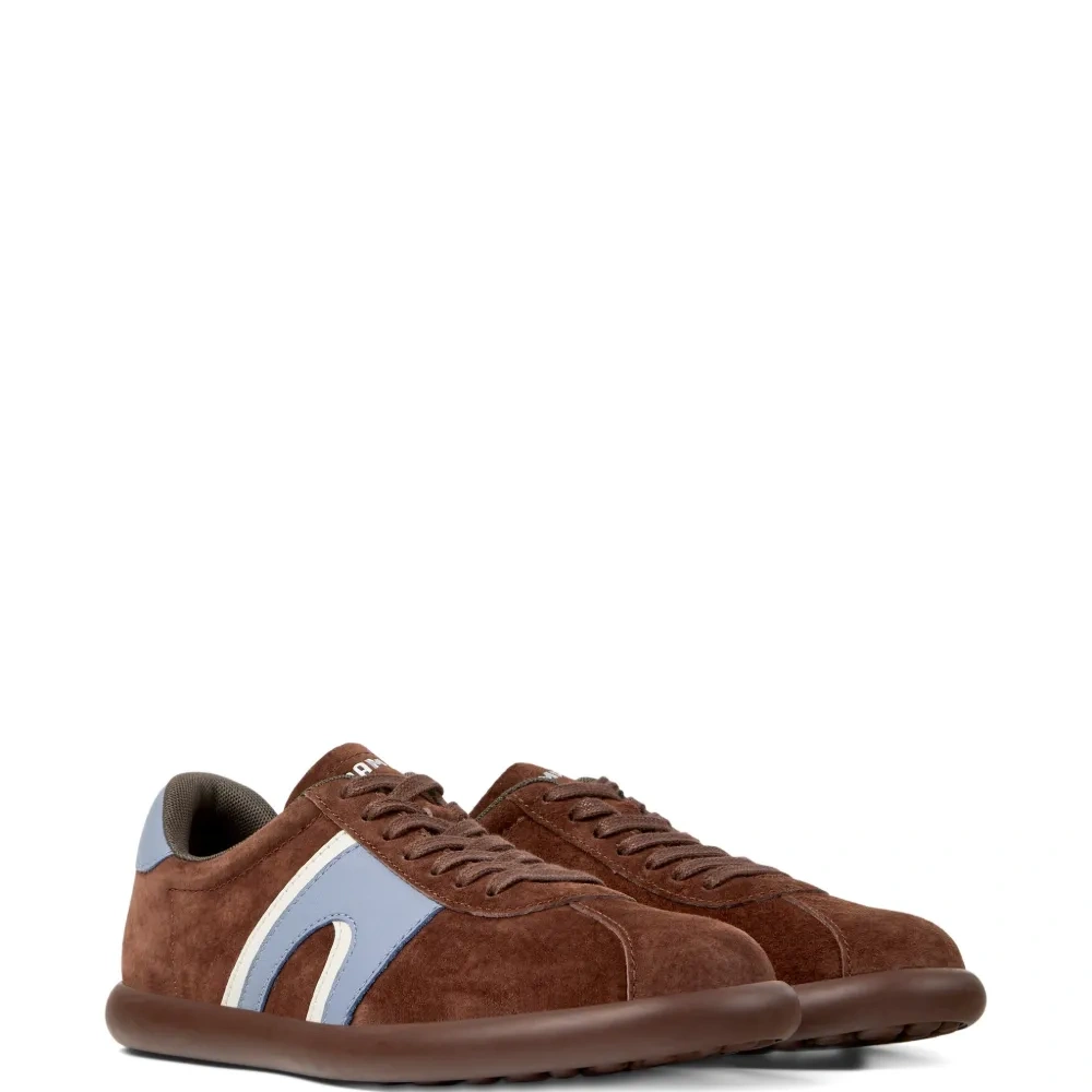коричневая кожа, шнуровка, полосатая отделка, круглый носок, контрастная задник