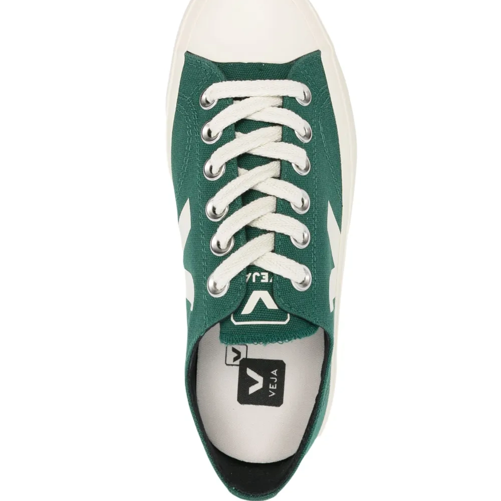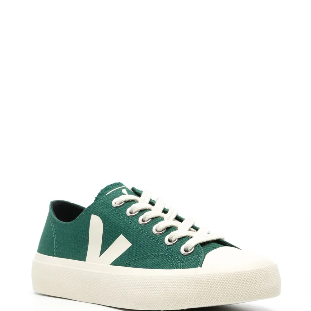 Нефритовый, органический хлопок, логотип сбоку, язычок с логотипом, контрастный носок, закругленный носок, шнуровка спереди, стелька с логотипом и плоская резиновая подошва. Узнать больше о том, какие товары получают отметку «Ответственный выбор», можно из материала «Как мы оцениваем экологичность и этичность».