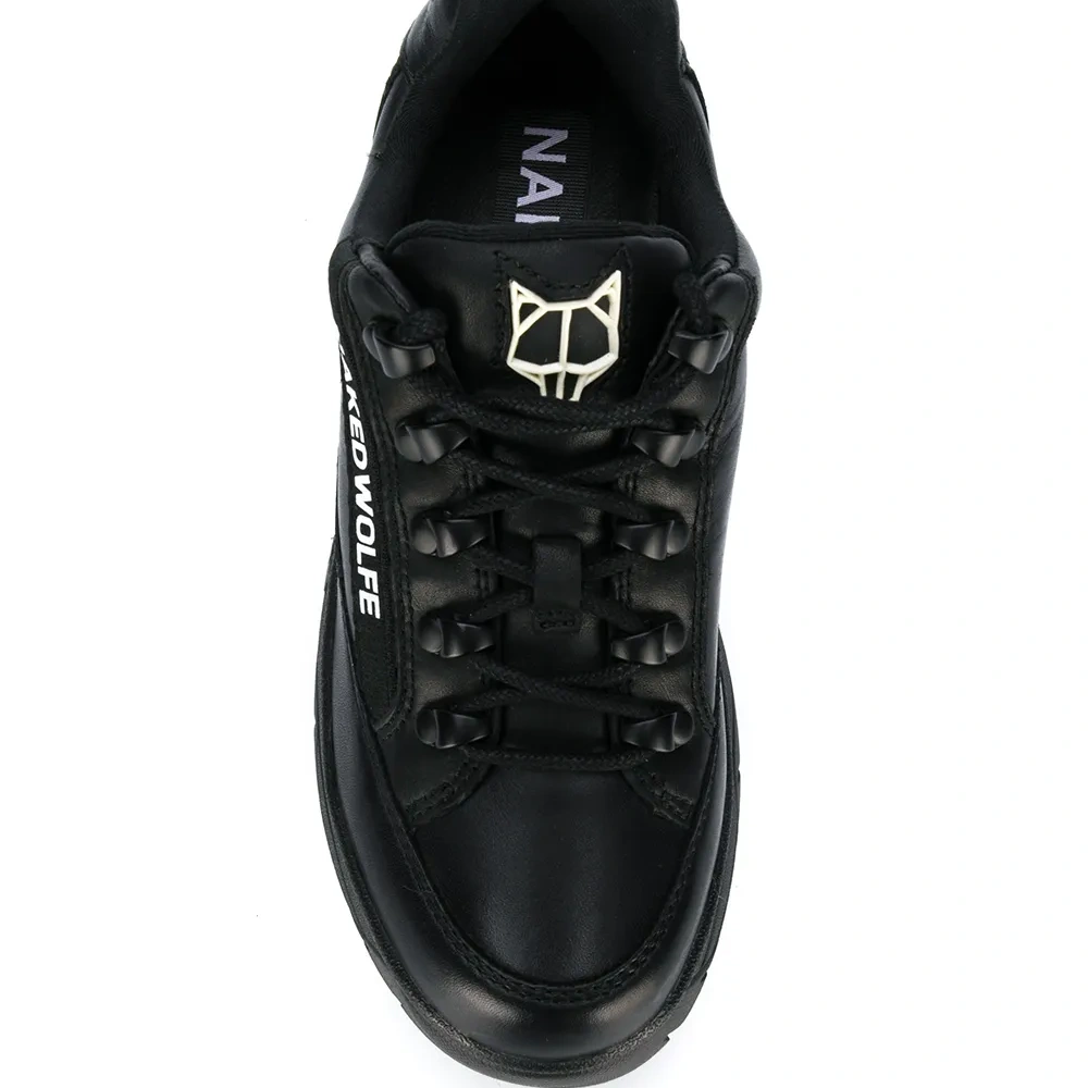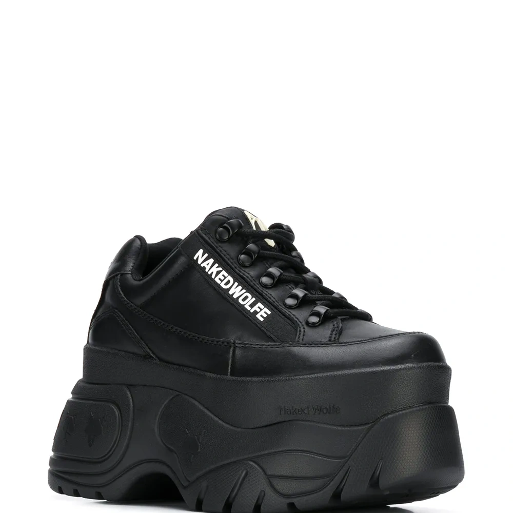 Кроссовки на платформе от Naked wolfe. Закругленный носок, шнуровка спереди и заплатка с логотипом на язычке. Цвет: черный.
