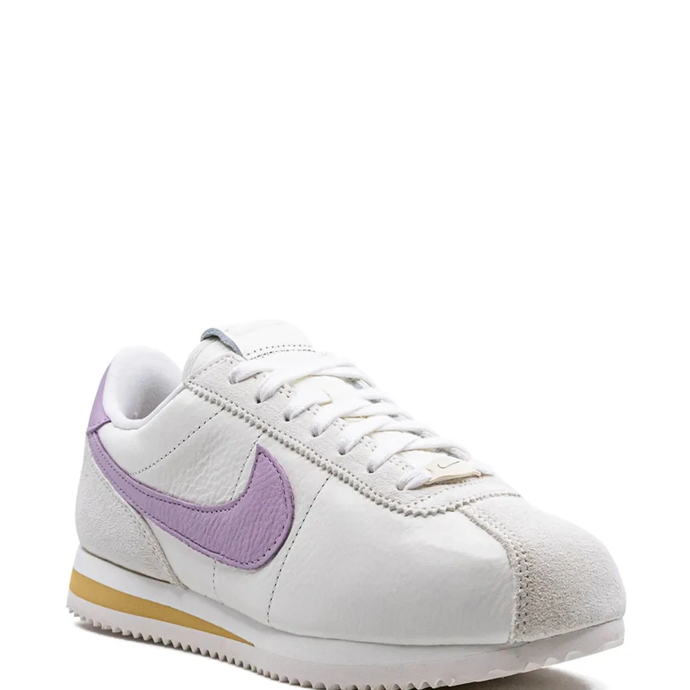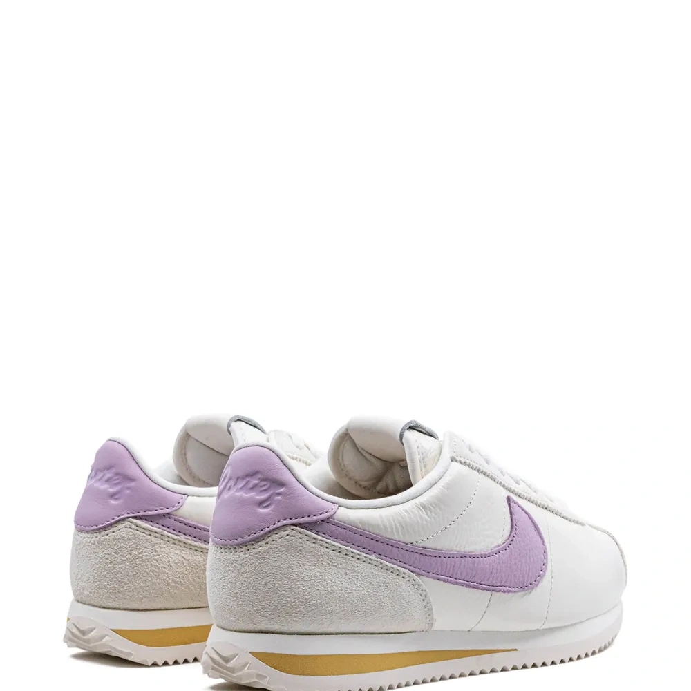 Кремовый, лиловый, золотистая охра, замша из телячьей кожи, телячья кожа, вставки, логотип Nike Swoosh, нашивка с логотипом на язычке, закругленный носок, шнуровка спереди, задник с логотипом и плоская резиновая подошва. Эта модель представлена на маркетплейсе, где можно найти самые редкие модели кроссовок, о которых мечтают коллекционеры и любители streetwear по всему миру.