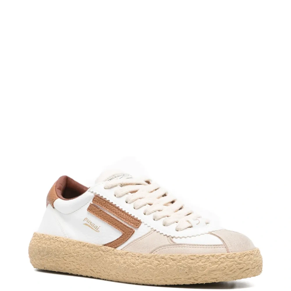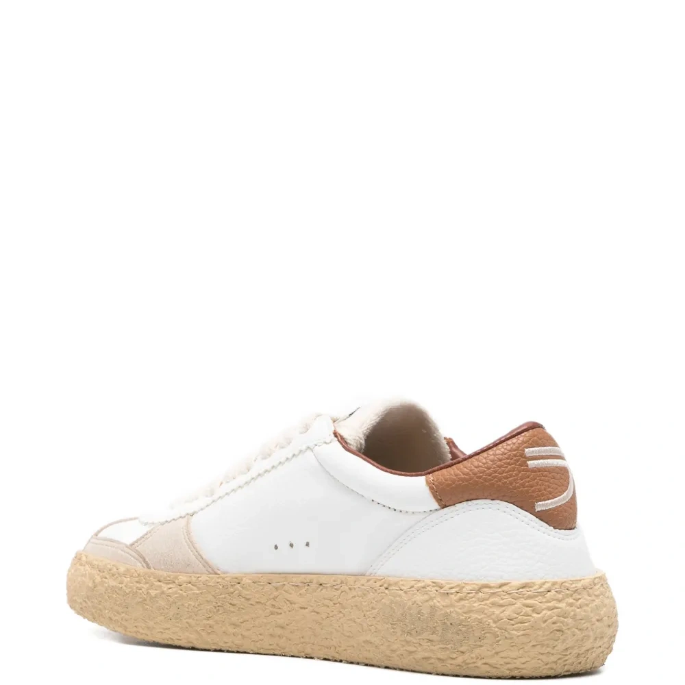 белый и бежевый с вставками, шнуровка, круглый носок, плоская подошва, детали с логотипом