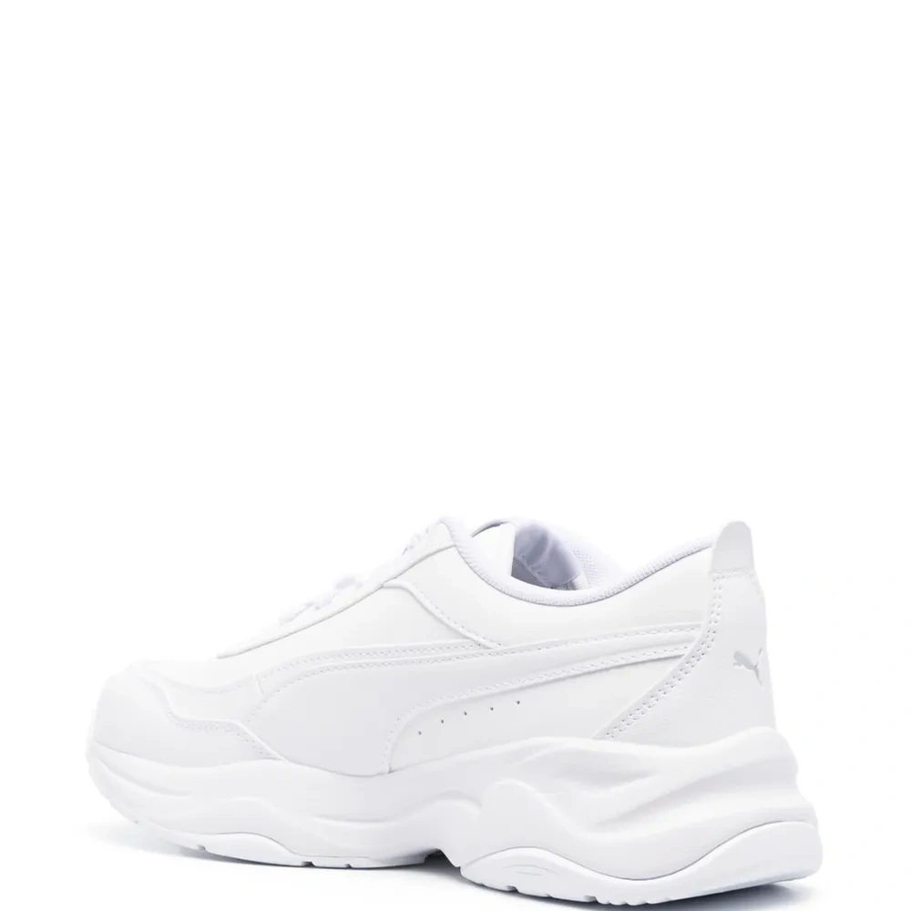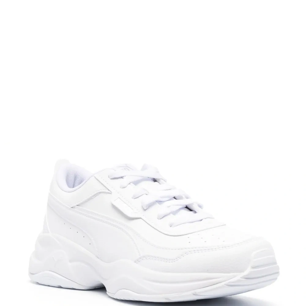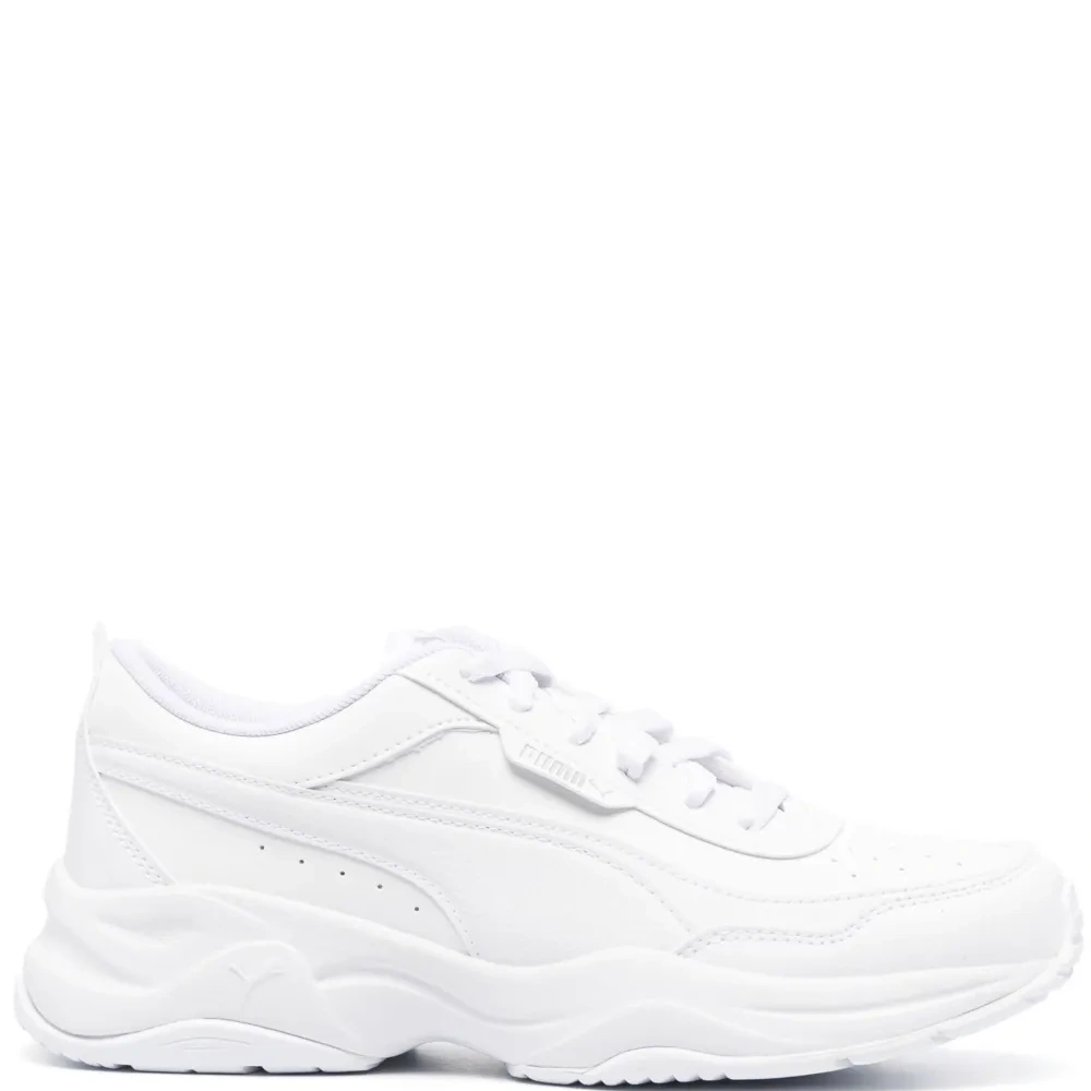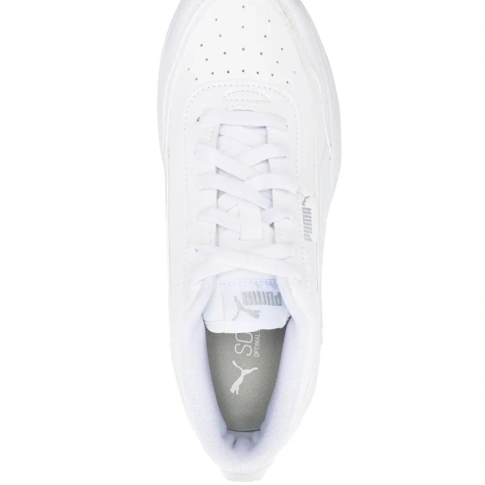 Белый, перфорация, нашивка с логотипом на язычке, задник с логотипом, логотип на подошве, петля для подтягивания сзади, шнуровка спереди, стелька с логотипом и плоская резиновая подошва.