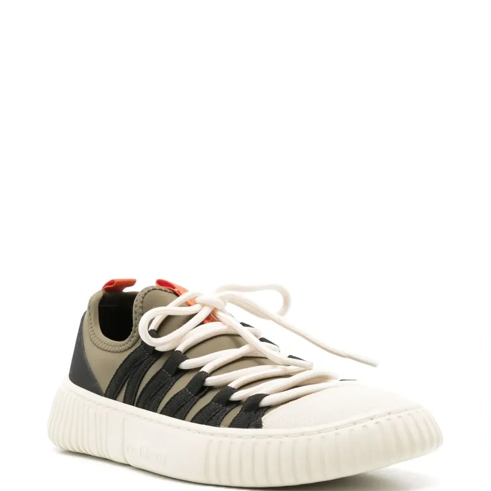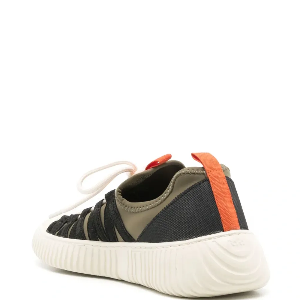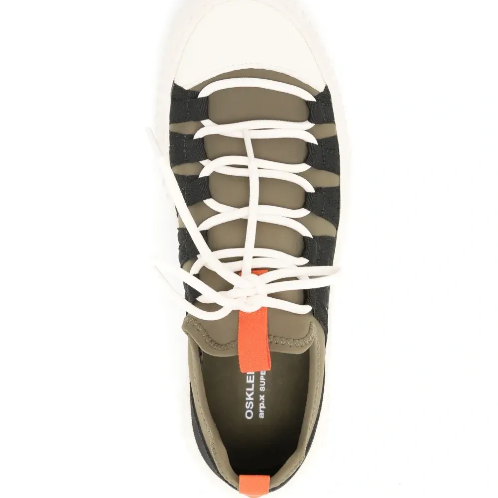 Оливково-зеленый, вставки, контрастный носок, петля для подтягивания сзади, закругленный носок, шнуровка спереди, стелька с логотипом и рифленая резиновая подошва.