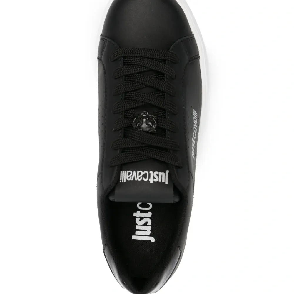 Черный/белый, телячья кожа, серебристый логотип, декор Tiger Head, язычок с логотипом, контрастный задник, шнуровка спереди, закругленный носок, стелька с логотипом и плоская резиновая подошва.