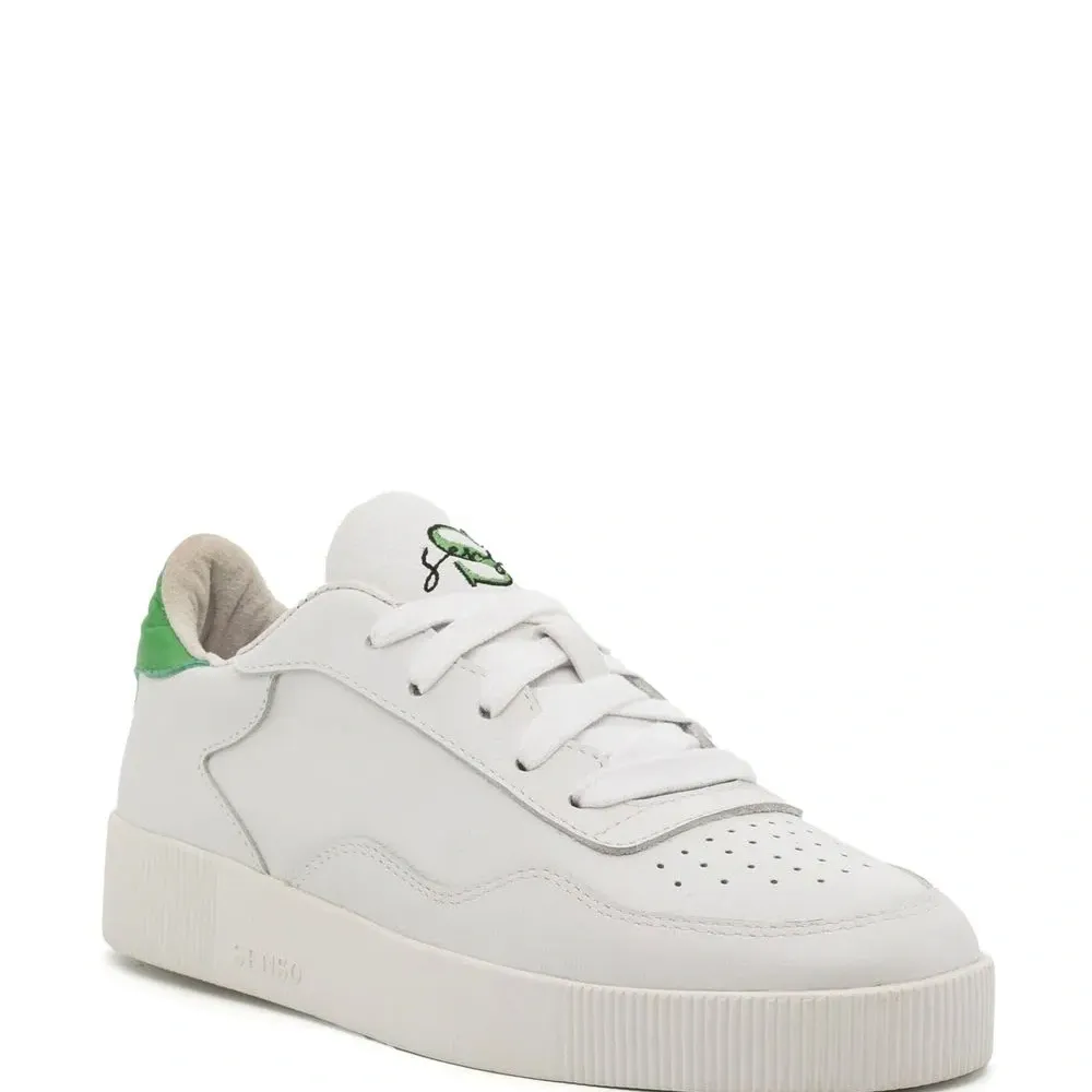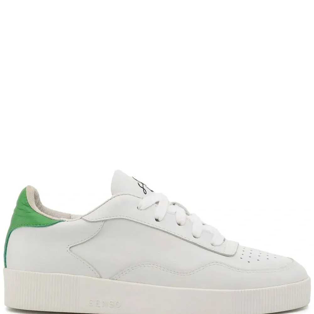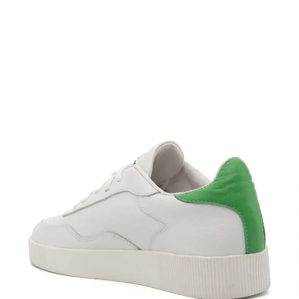 Кремовый, салатовый, телячья кожа, перфорация, язычок с вышитым логотипом, закругленный носок, шнуровка спереди, стелька с логотипом, контрастный задник и плоская резиновая подошва.