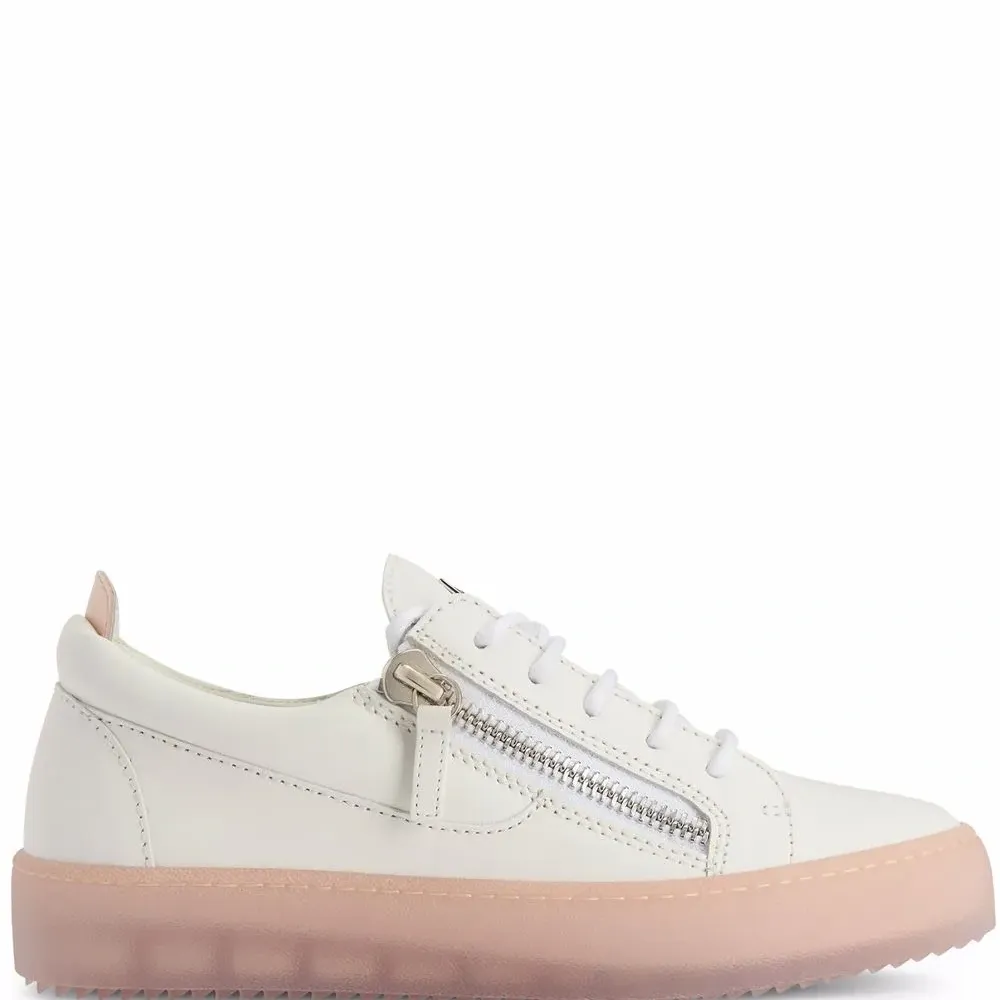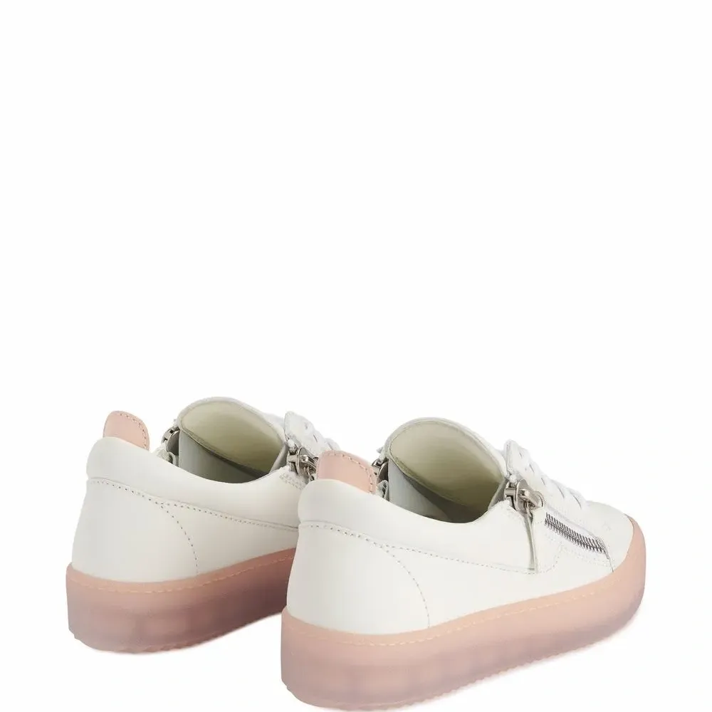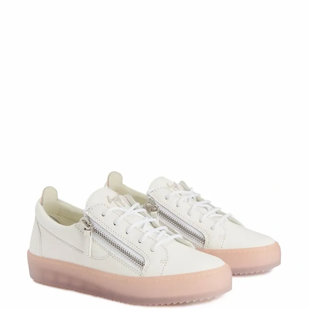 Металлический логотип на язычке, закругленный носок, шнуровка спереди, застежка на молнии сбоку, стелька с логотипом и плоская резиновая подошва. Цвет: белый.