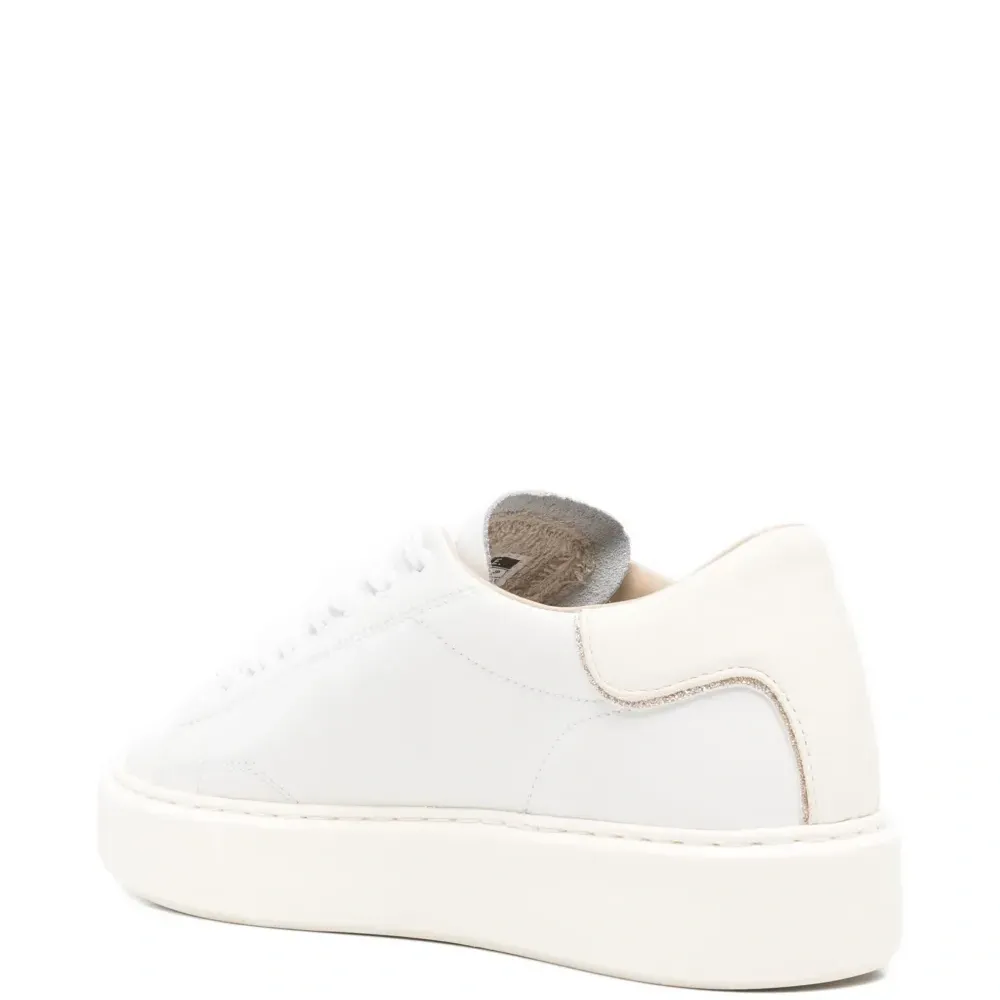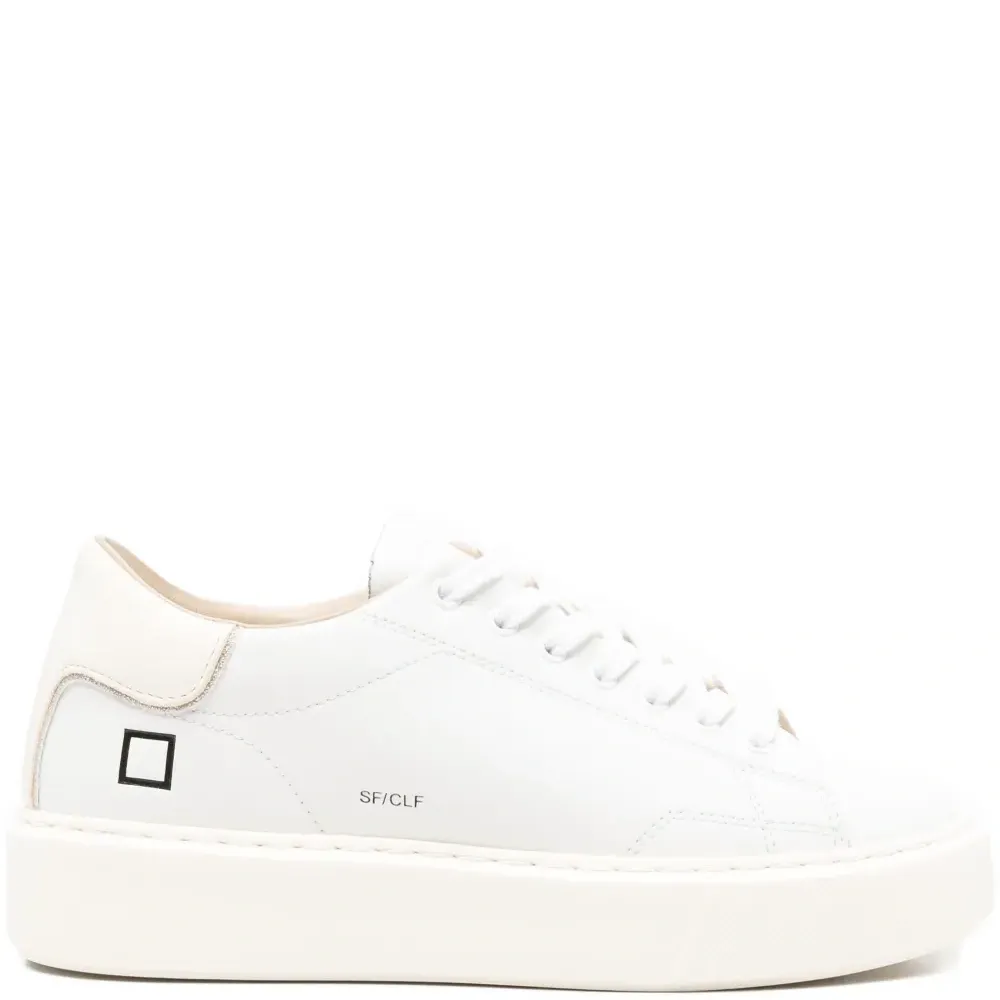 белый верх из кожи застежка на шнуровке круглый нос плоская подошва декор с логотипом