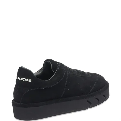 верх из черной замши, круглый носок, логотип, шнуровка