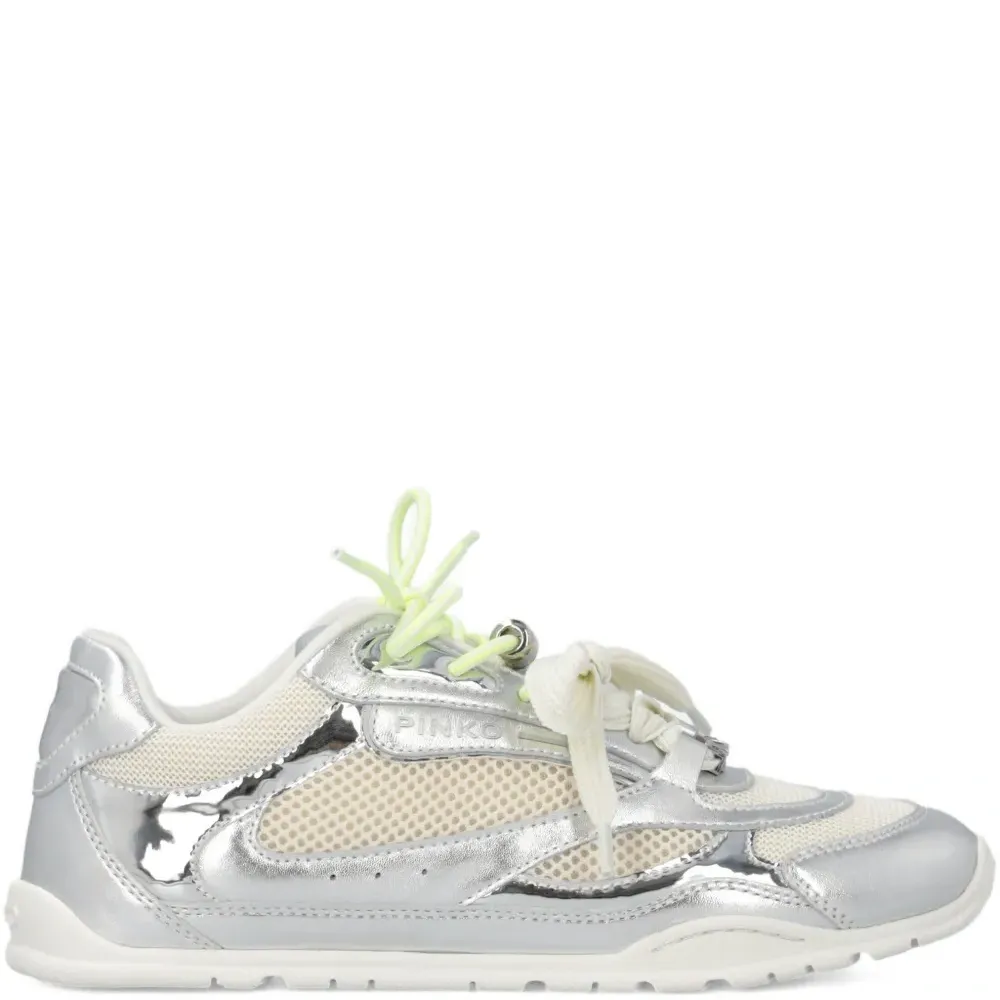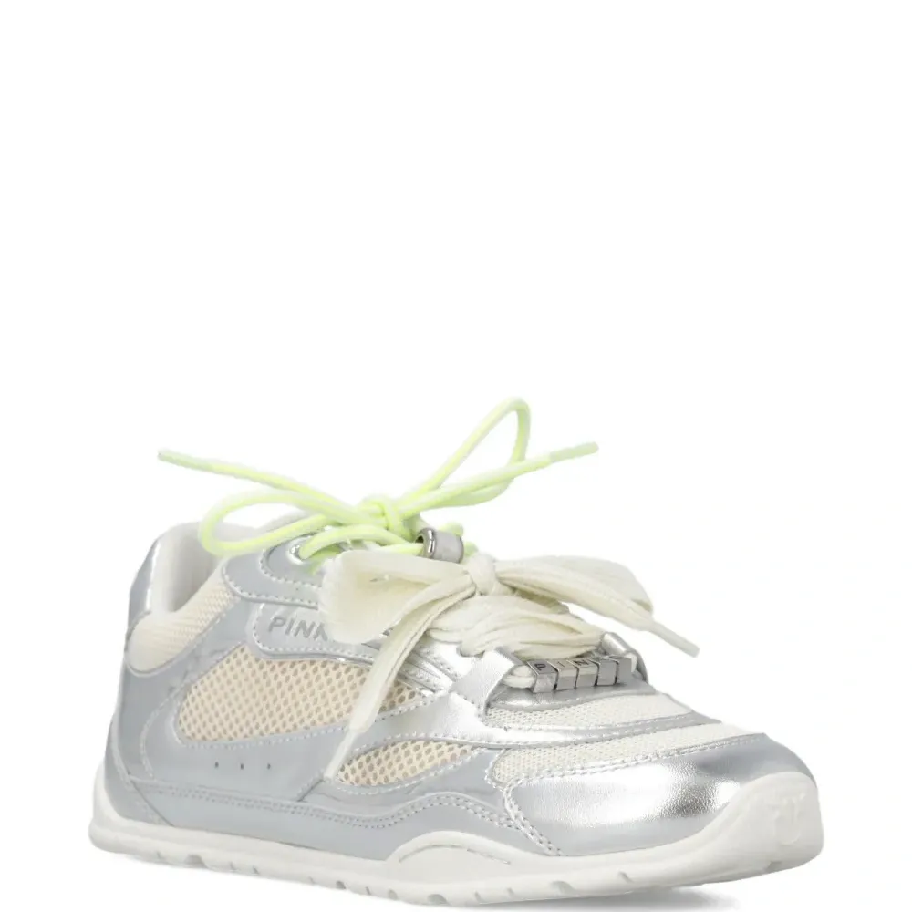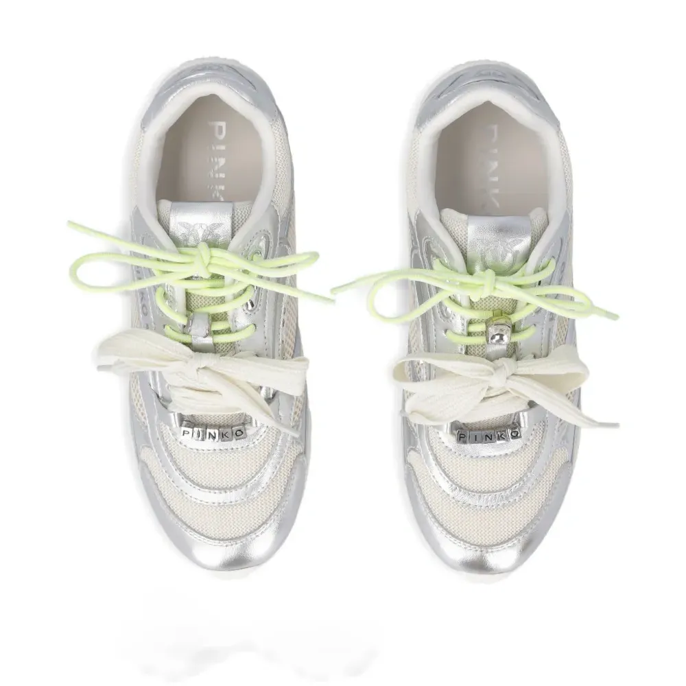 серебристые сетчатые вставки, логотип, двухцветные шнурки, круглый нос