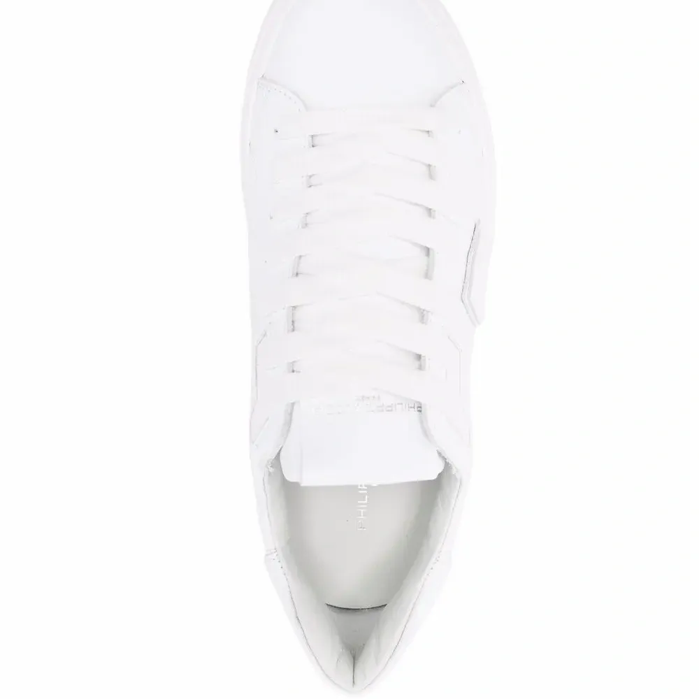 Задник с логотипом, нашивка с логотипом сбоку, закругленный носок, шнуровка спереди, стелька с логотипом и плоская резиновая подошва. Цвет: белый.