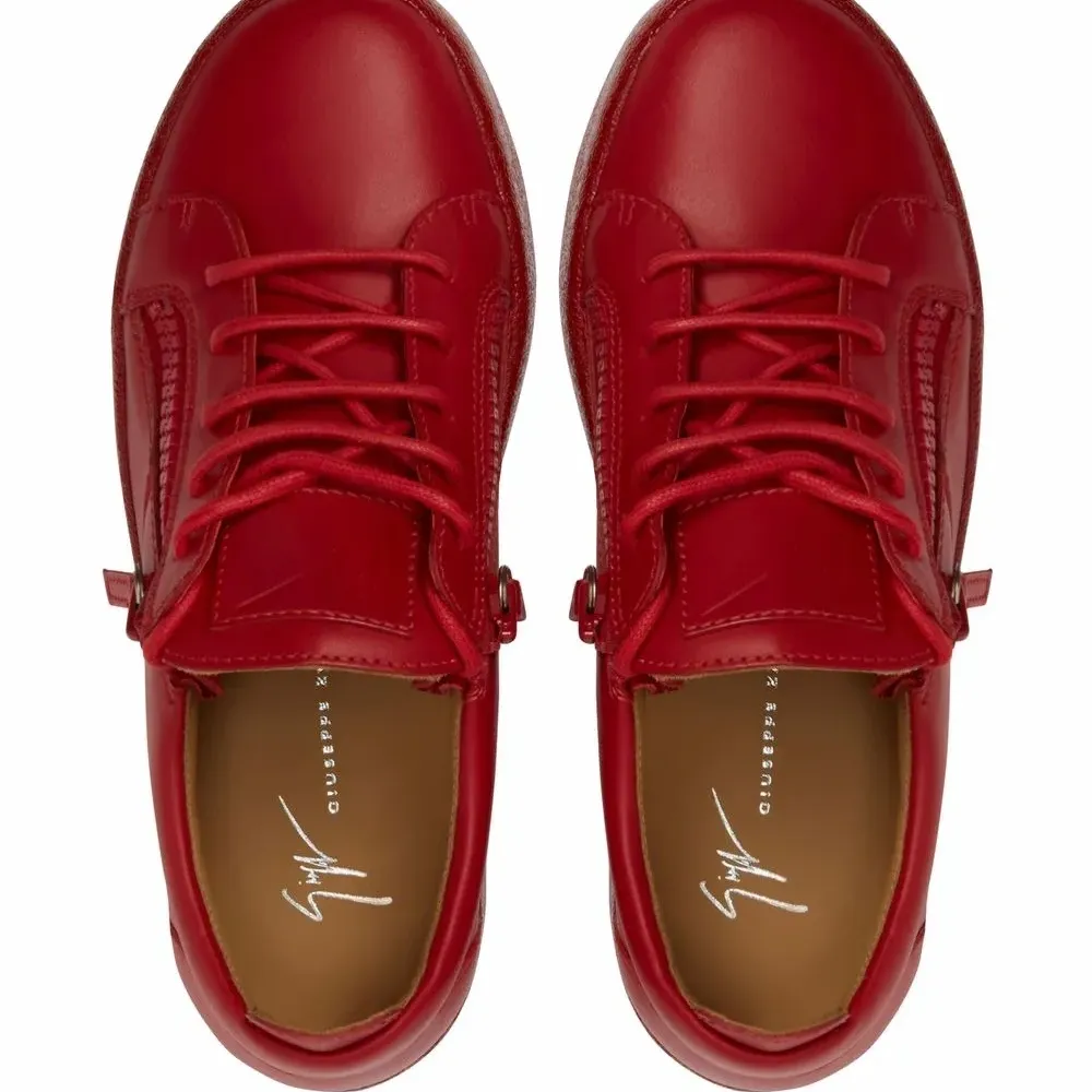 Шнуровка спереди, деталь с молнией и плоская резиновая подошва. Цвет: красный.