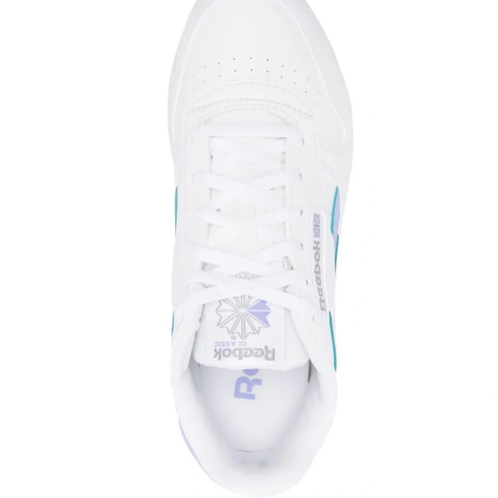 Белый, голубой, телячья кожа, вставки, закругленный носок, шнуровка спереди и рифленая резиновая подошва.