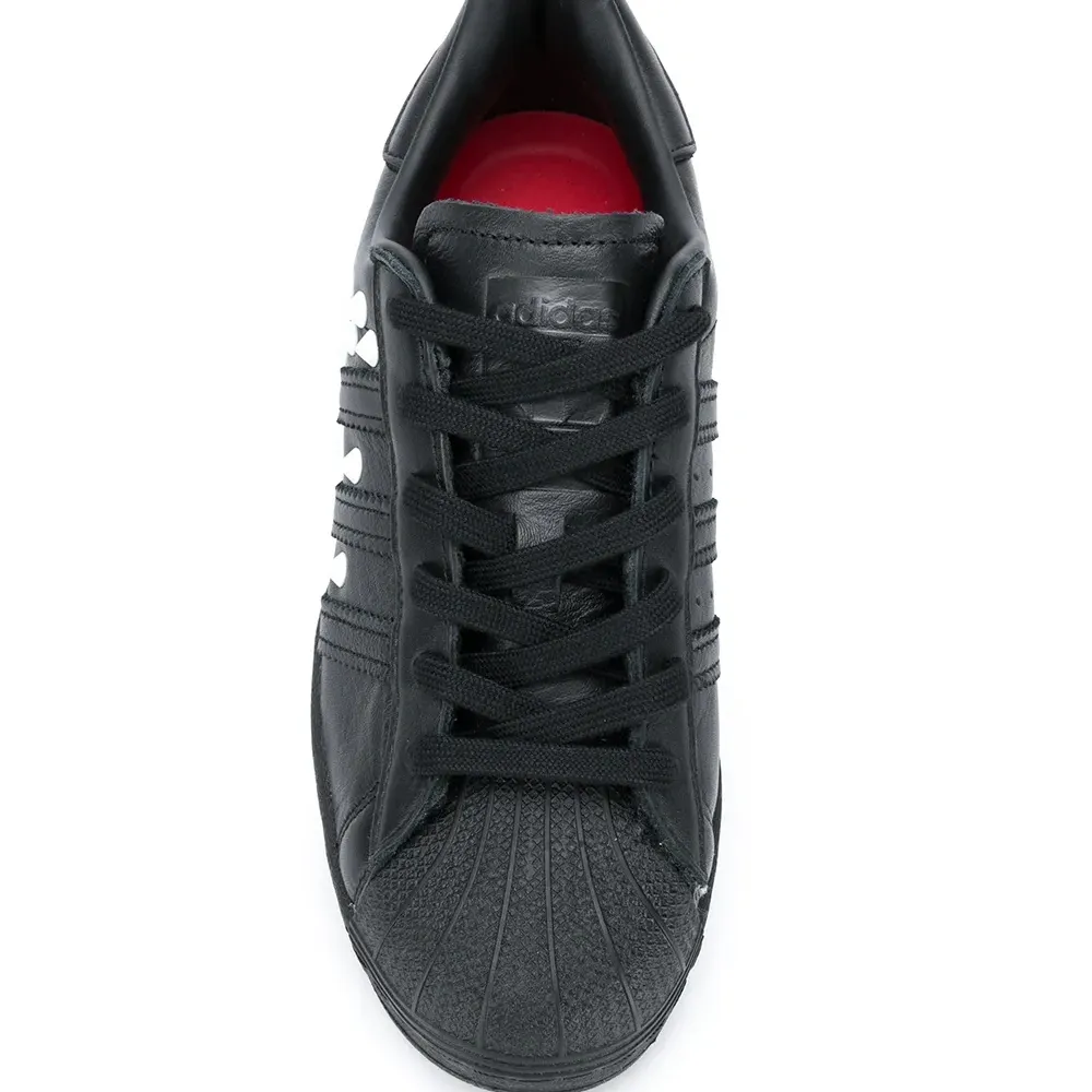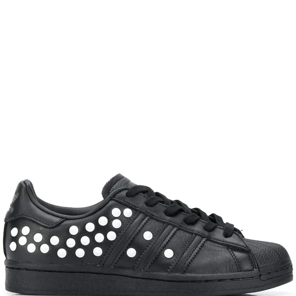 Кеды Superstar от adidas (Адидас). Закругленный носок, шнуровка спереди, фирменная деталь с тремя полосками, узор в горох, дизайн в двух тонах и плоская подошва. Цвет: черный. POSITIVELY CONSCIOUS: Мы объединились с агентством Good On You, которое составляет рейтинг ответственных брендов. Этот бренд получил отметку «Ответственный выбор», потому что отвечает ключевым стандартам агентства.