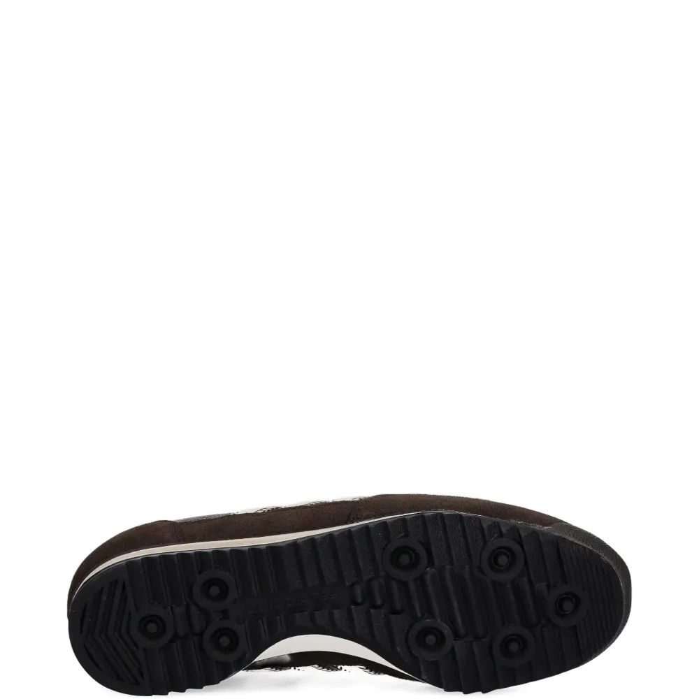 темно-коричневые, шнуровка, круглый носок, три полоски, простроченные детали, резиновая подошва