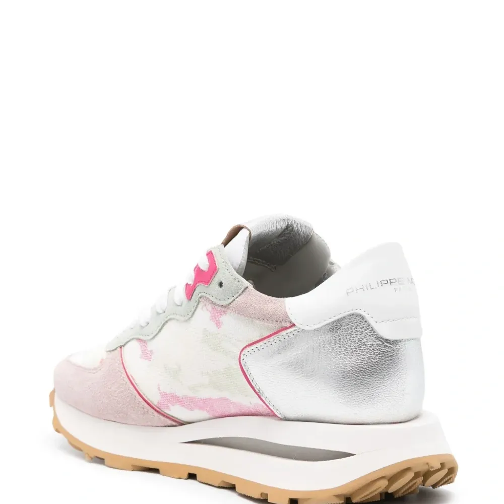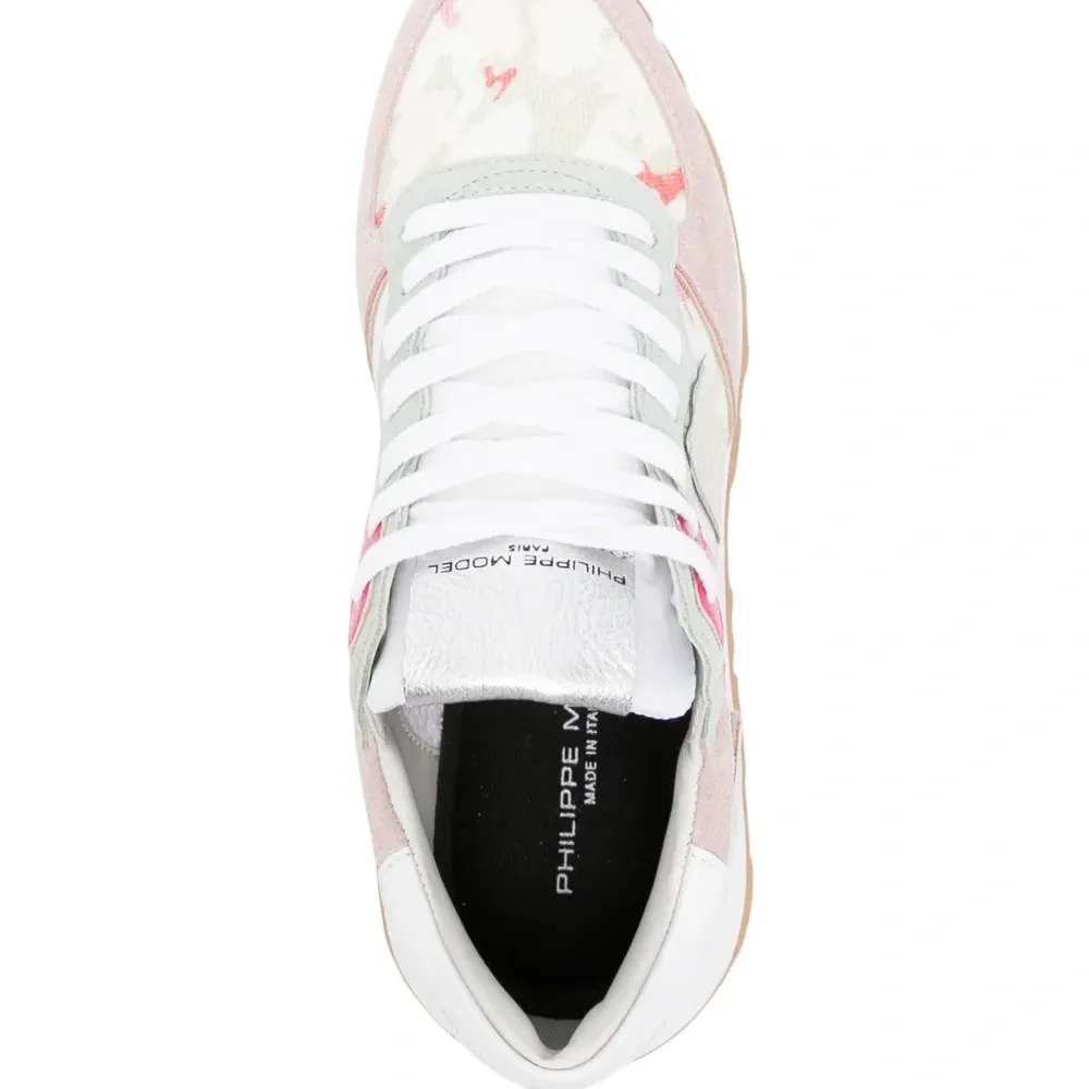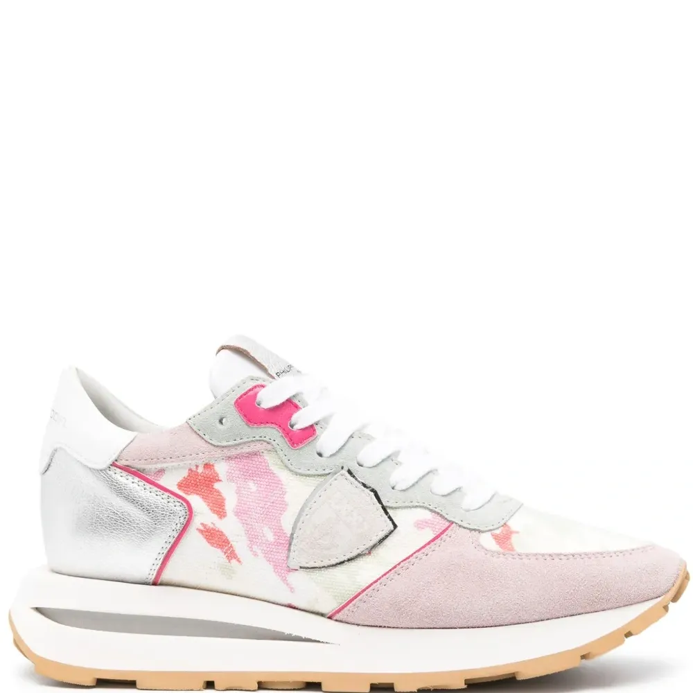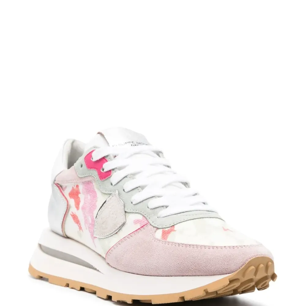Телячья кожа, абстрактный принт, вставки, нашивка с логотипом сбоку, нашивка с логотипом на язычке, контрастный задник с логотипом, миндалевидный носок, шнуровка спереди, стелька с логотипом и массивная резиновая подошва.