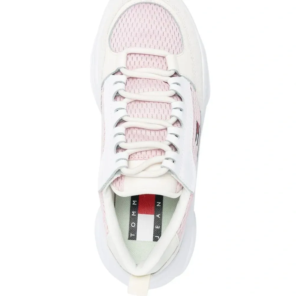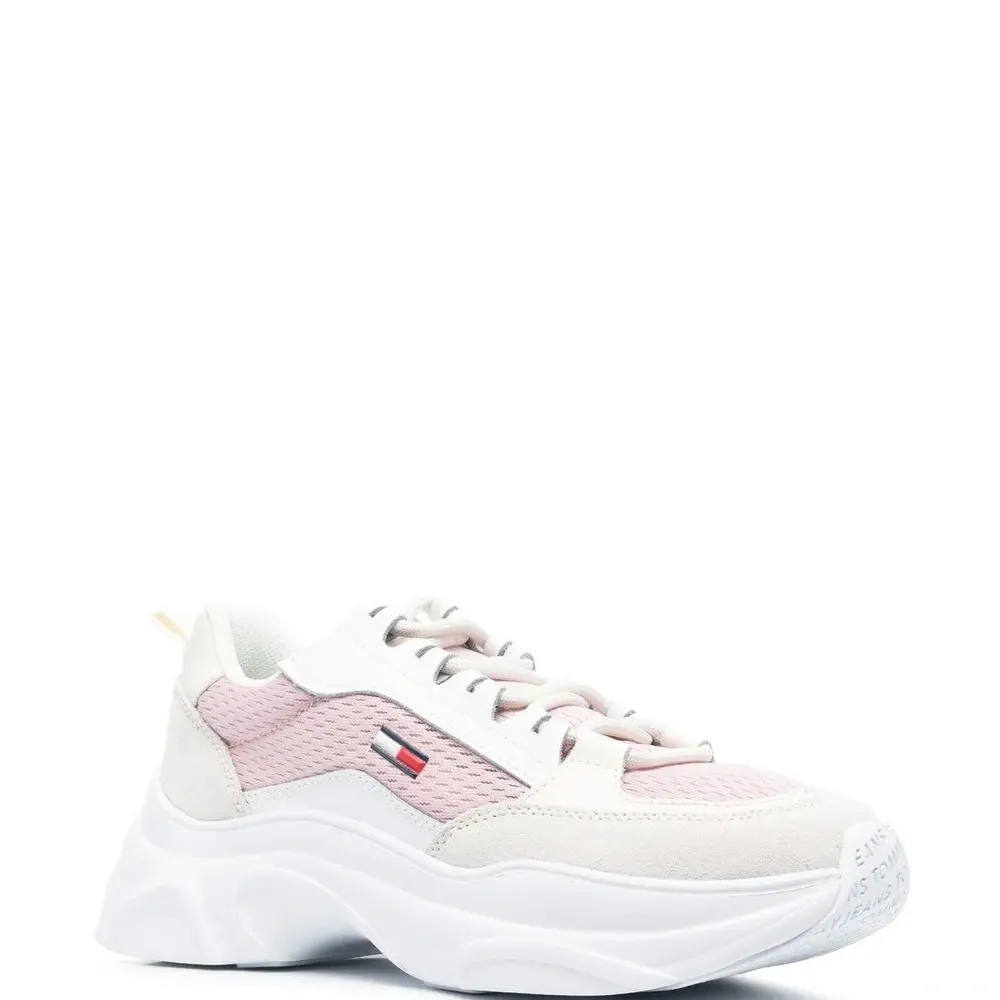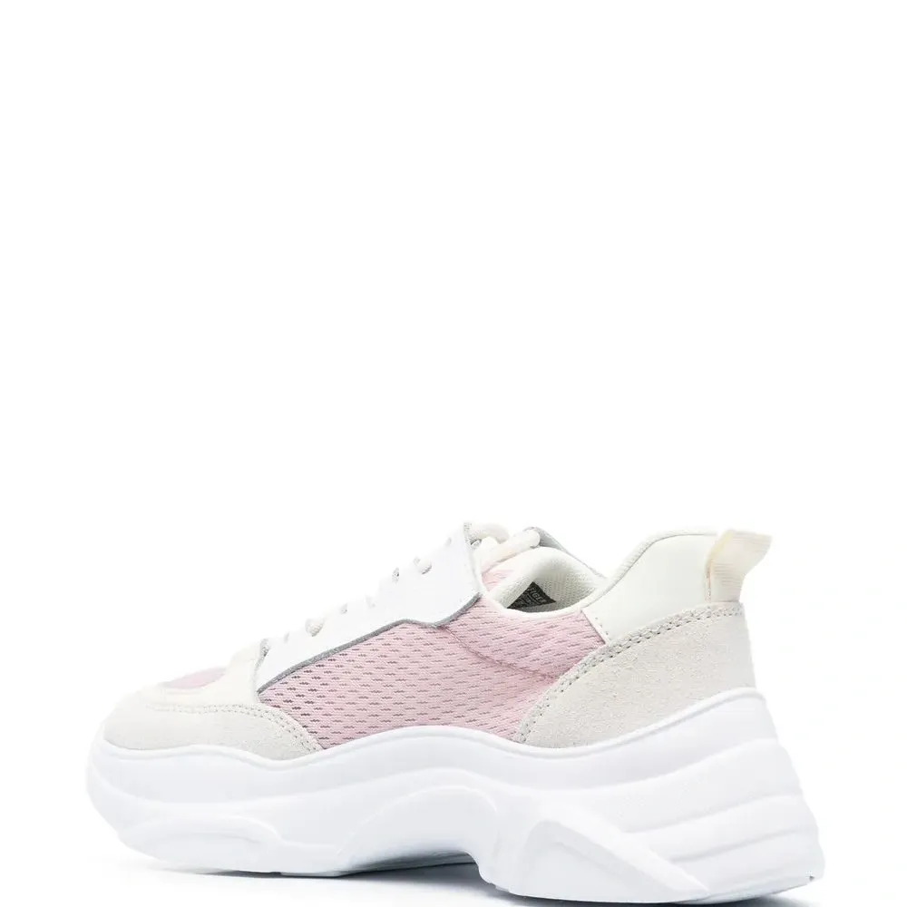 Розовый, телячья кожа, закругленный носок, шнуровка спереди, стелька с логотипом и массивная резиновая подошва.
