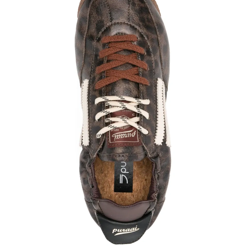коричневый анималистичный принт нашивка с логотипом зашнуровка спереди резиновая подошва петелька на пятке