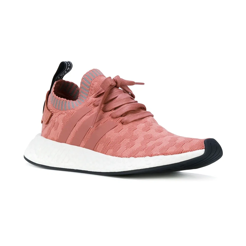 Розовые кроссовки 'Adidas Originals NMD_R2 Primeknit' от Adidas(Адидас). Закругленный носок, шнуровка спереди, петля для подтягивания сзади, плоская резиновая подошва.