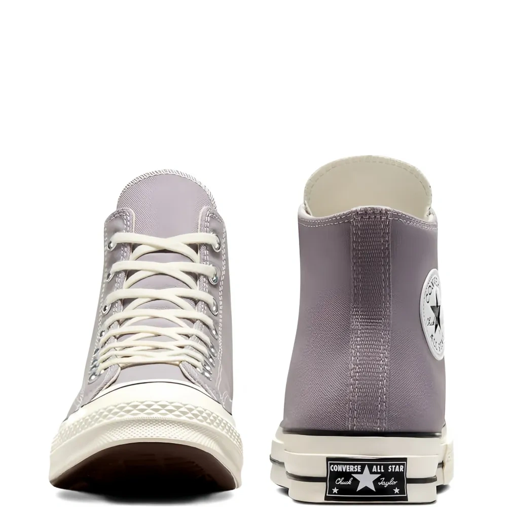 сиреневые высокие кеды на резиновой подошве с шнуровкой и нашивкой с логотипом
