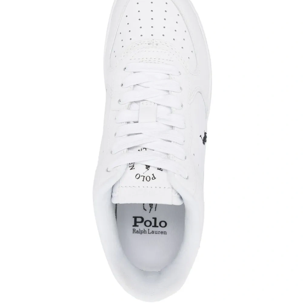 Белый/черный, кожа, знаковый логотип Polo Pony, перфорация, логотип на подошве, шнуровка спереди, закругленный носок и плоская резиновая подошва.