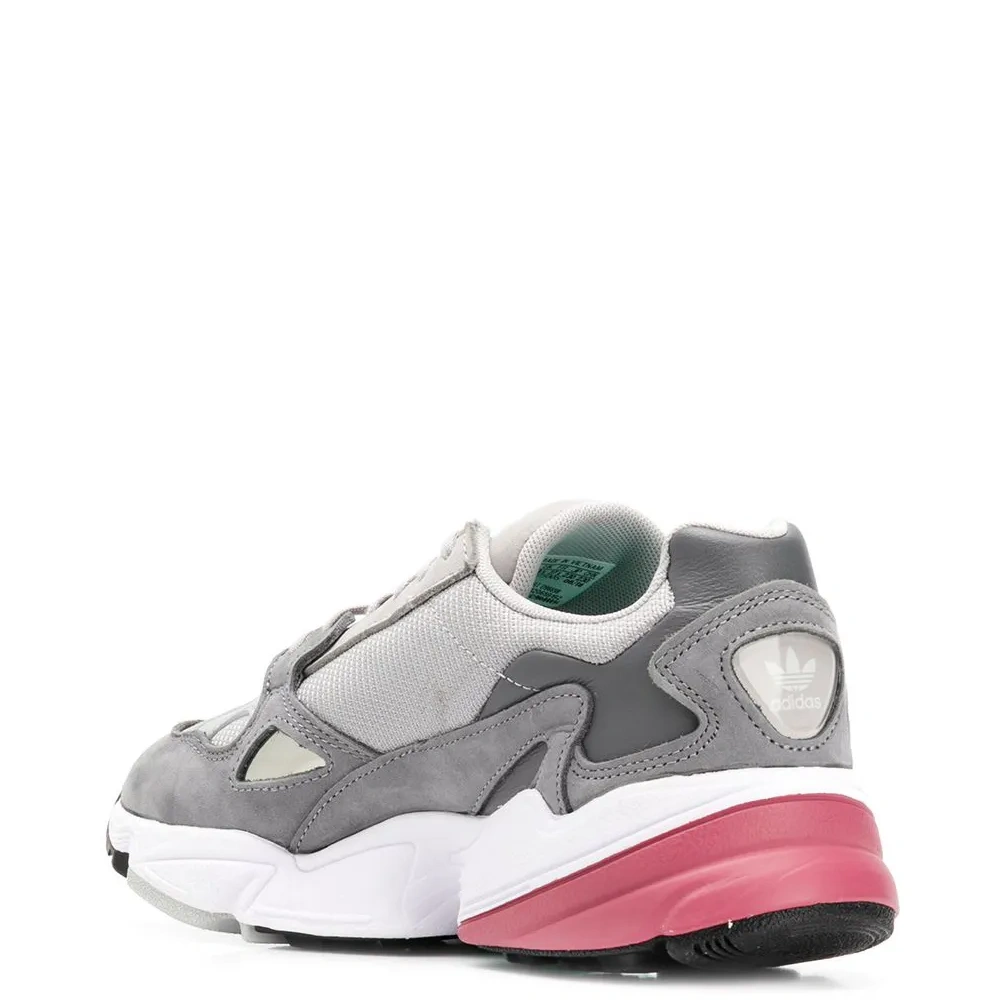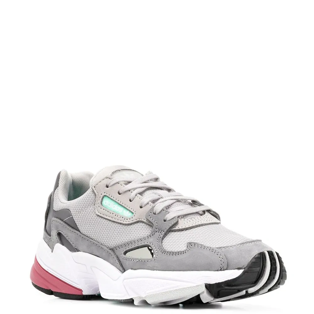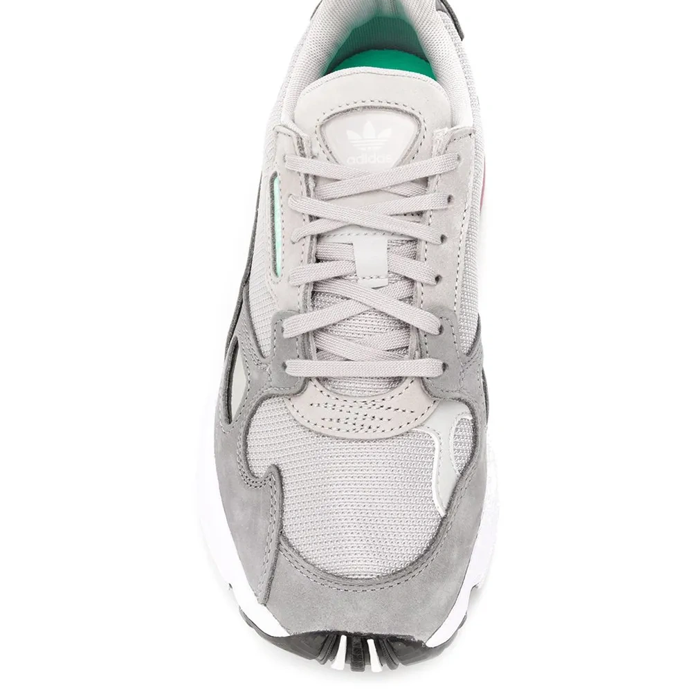 При создании спортивной обуви adidas делает основной акцент на качество и инновационные технологии, тем самым вдохновляя вас на еще большие свершения. В коллекцию осень-зима 2018 вошли серые кроссовки Falcon от adidas (Адидас). Белая резиновая подошва, верх в сетку, уплотненная щиколотка, контрастные вставки, логотип сбоку, застежка на шнуровке и нашивка с логотипом на язычке.
