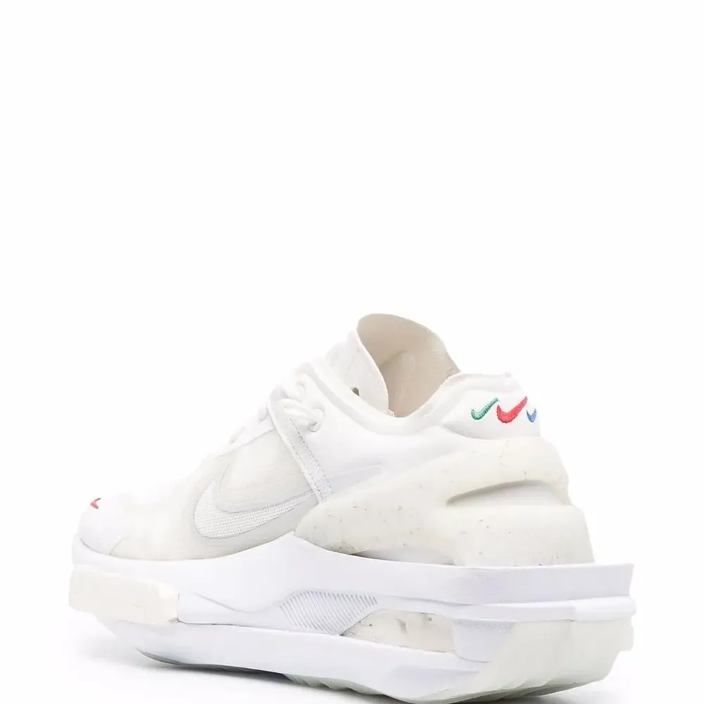 Логотип Nike Swoosh, вставки, миндалевидный носок, шнуровка спереди и массивная резиновая подошва.