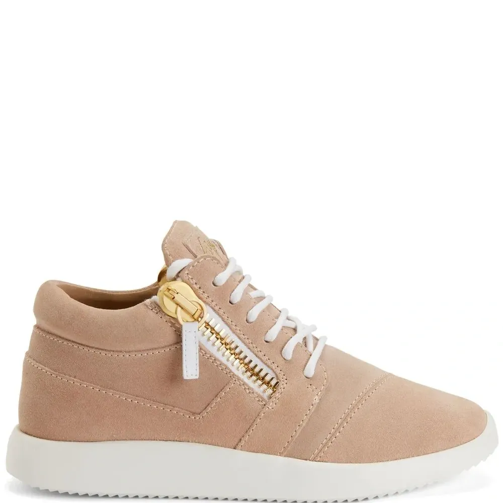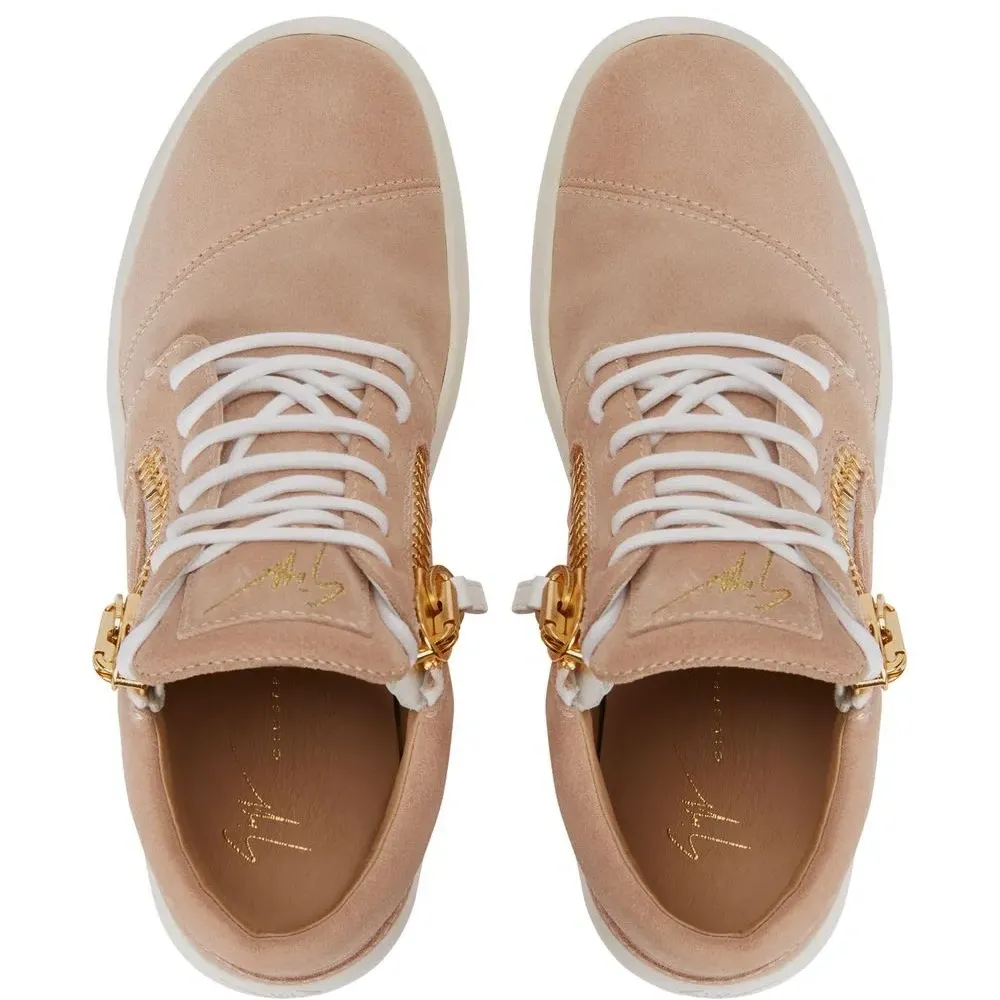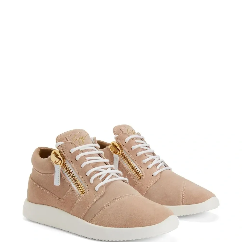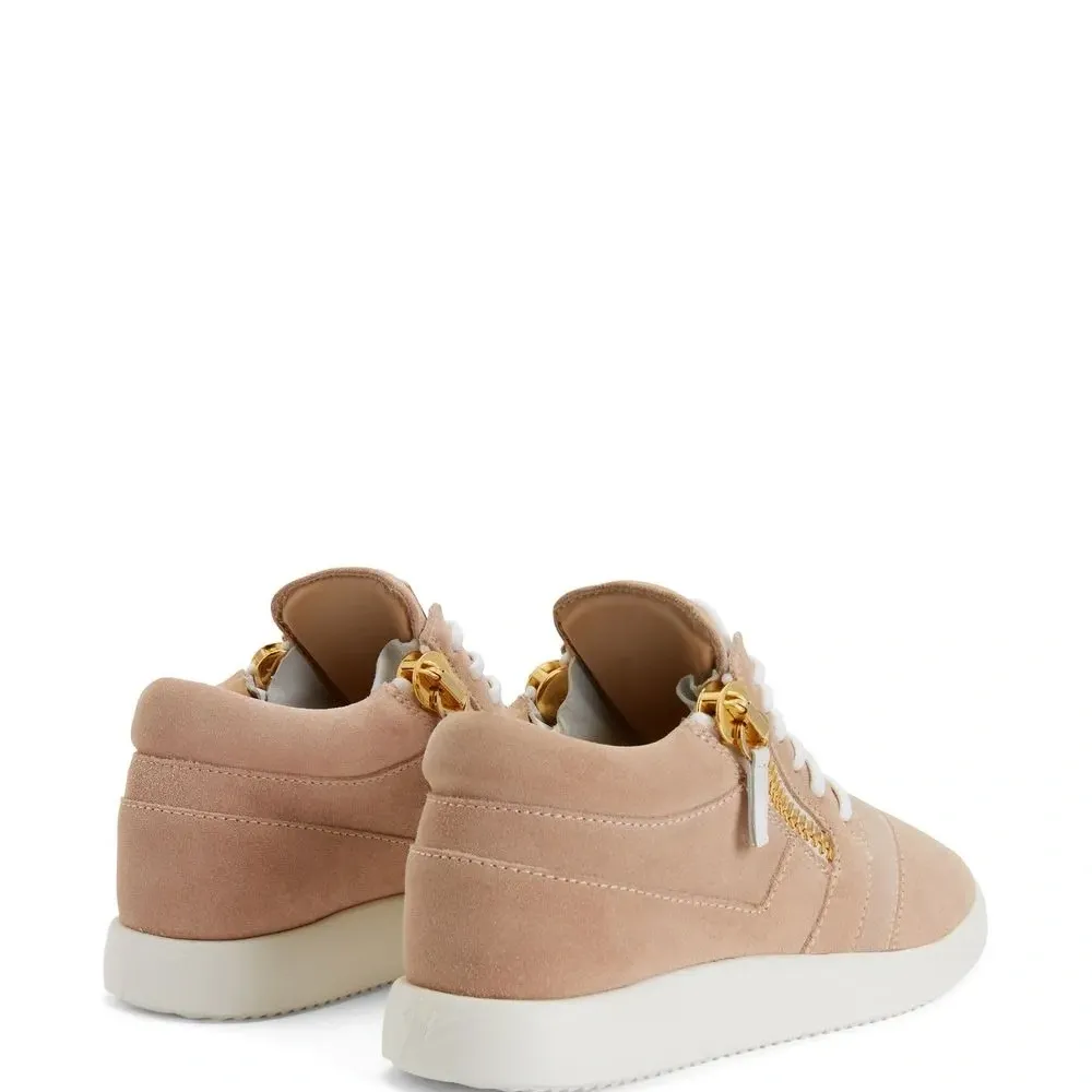 Расцветка Blush Beige, золотистая фурнитура, деталь с молнией, шнуровка спереди, закругленный носок и плоская резиновая подошва.