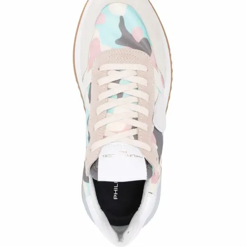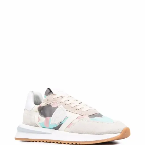 Задник с логотипом, нашивка с логотипом сбоку, нашивка с логотипом на язычке, камуфляжный принт, закругленный носок, шнуровка спереди, стелька с логотипом и плоская резиновая подошва. Цвет: белый.