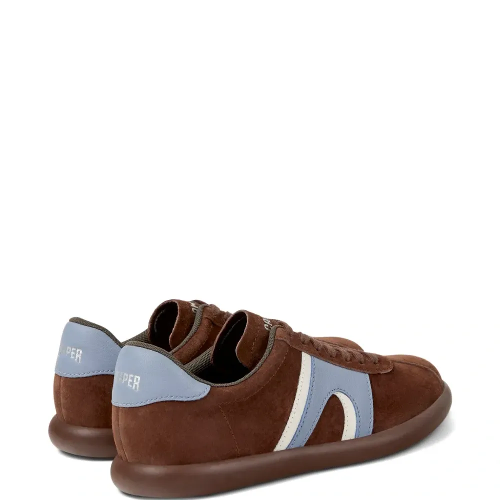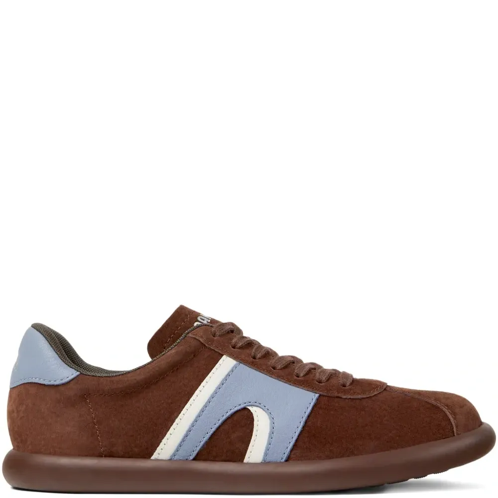 коричневая кожа, шнуровка, полосатая отделка, круглый носок, контрастная задник