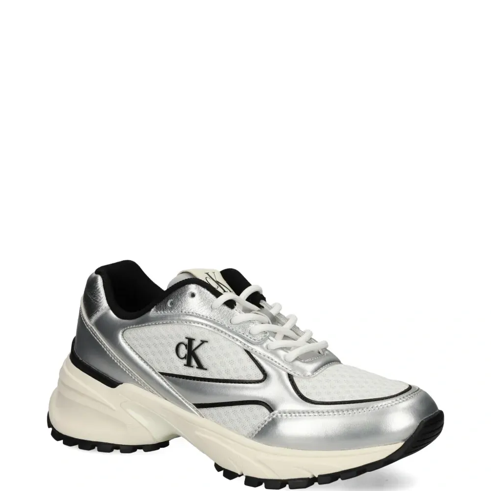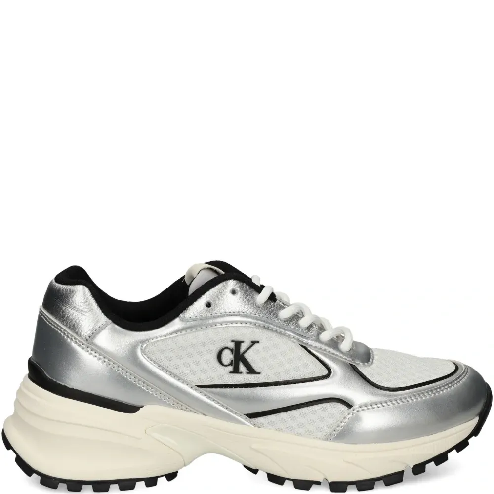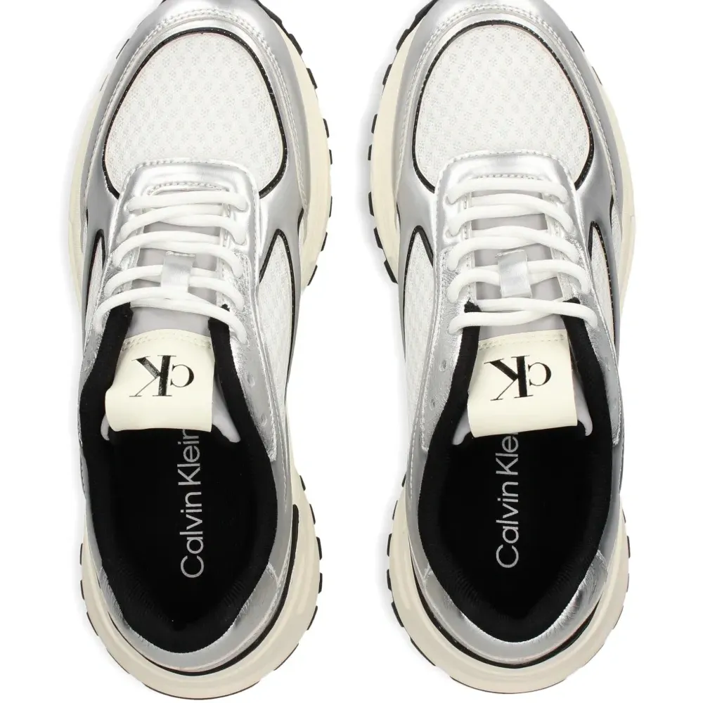 серебристо-белый, логотип, шнуровка, вставки из сетчатого материала, черная отделка, резиновая подошва