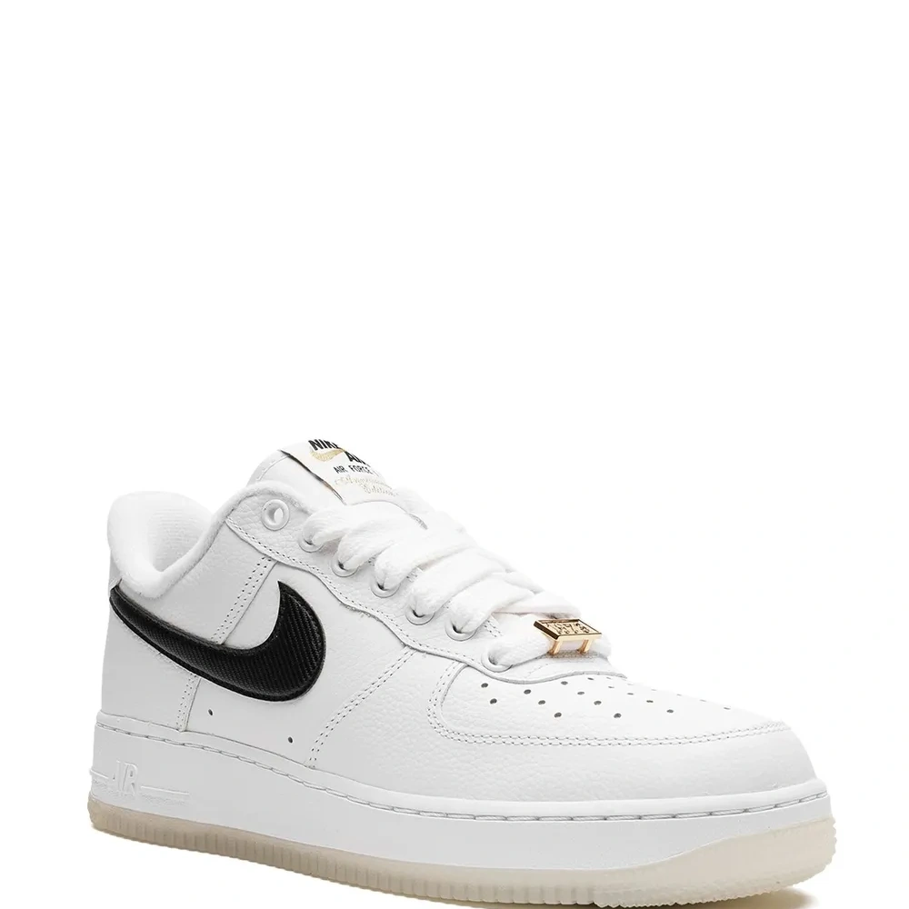 Белый/черный, телячья кожа, логотип Nike Swoosh, золотистая фурнитура, задник с логотипом, перфорированный носок, закругленный носок, шнуровка спереди и плоская резиновая подошва. Эта модель представлена на маркетплейсе, где можно найти самые редкие модели кроссовок, о которых мечтают коллекционеры и любители streetwear по всему миру.