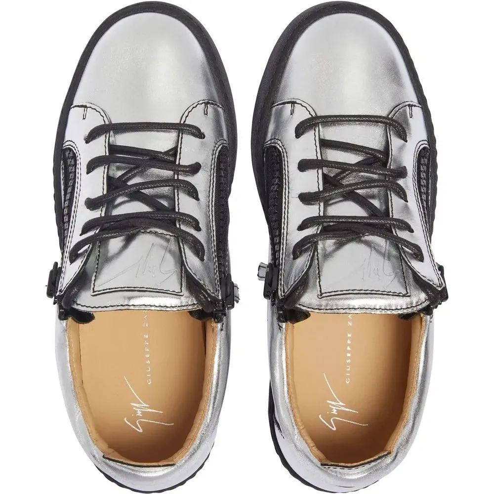 Серебристый, шнуровка спереди, эффект металлик, закругленный носок и плоская резиновая подошва.