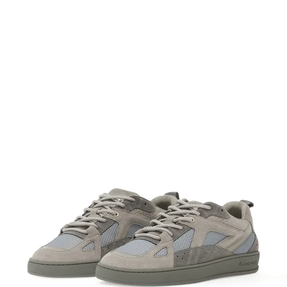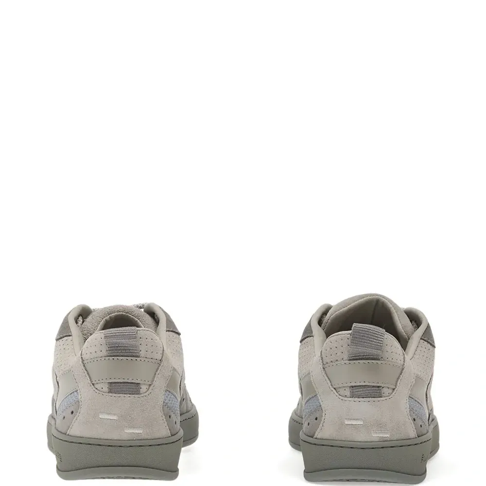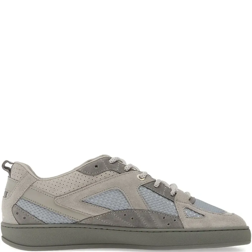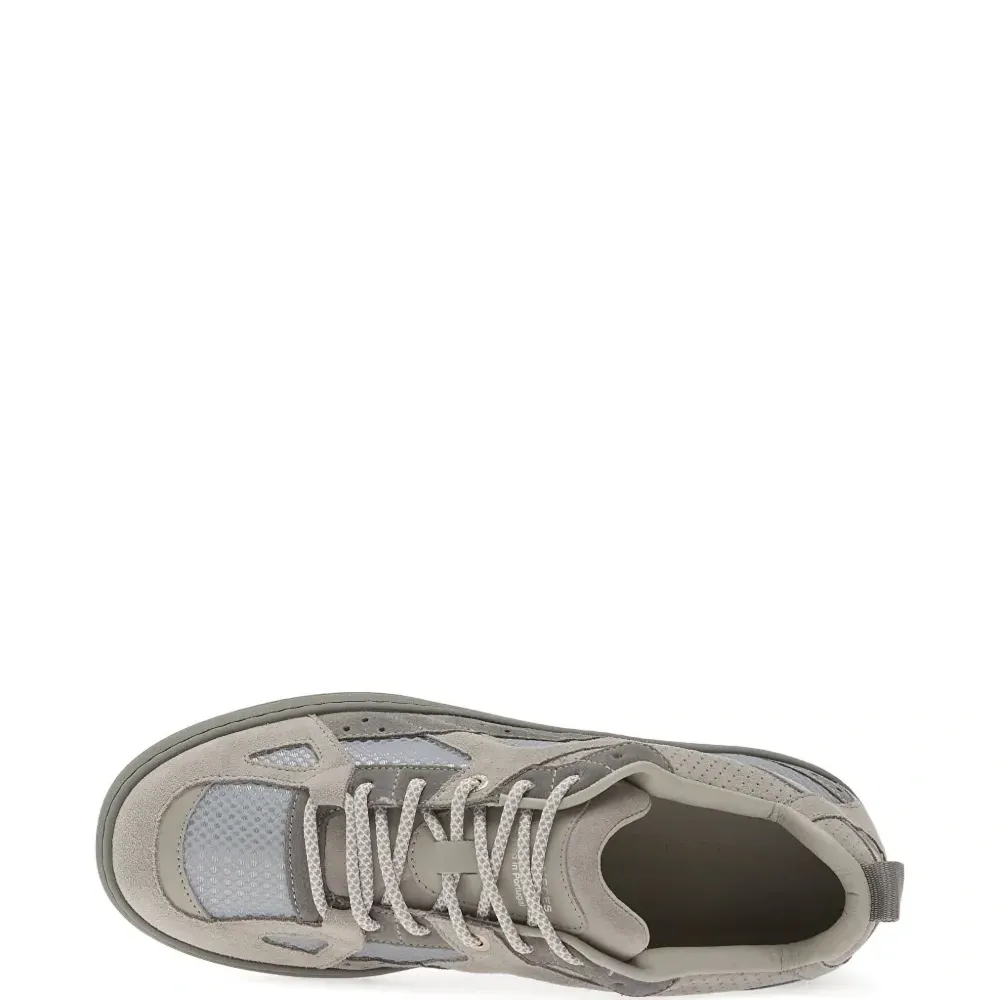 серый цвет, панельный дизайн, перфорированные детали, шнуровка, резиновая подошва, петля на пятке