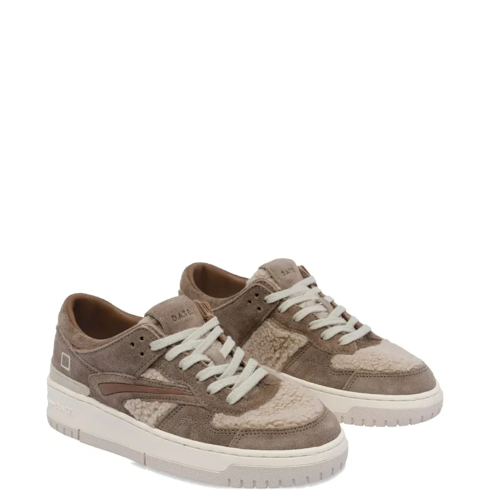верх из светло-бежевой замши, шнуровка, квадратная нашивка с логотипом