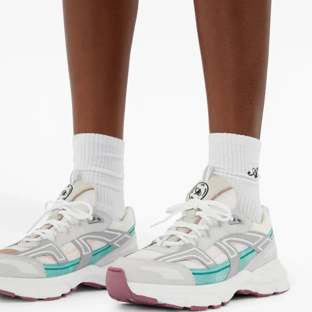 Кремовый, мятно-зеленый, светло-серый, кожа, вставки, нашивка с логотипом на язычке, закругленный носок, шнуровка спереди, стелька с логотипом, петля для подтягивания сзади и массивная резиновая подошва. Узнать больше о том, какие товары получают отметку «Ответственный выбор», можно здесь.