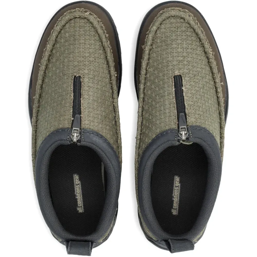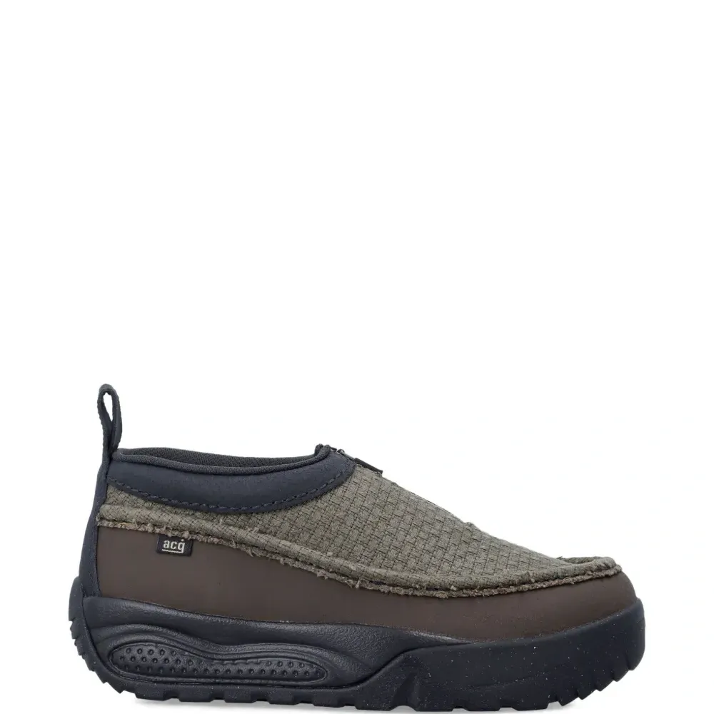 зеленый цвет, сзади застежка-молния и петля, круглый мыс