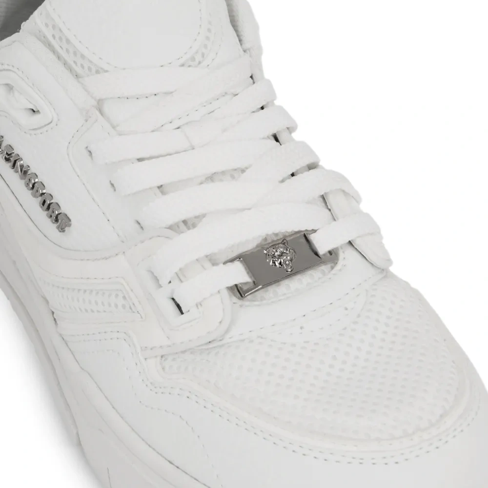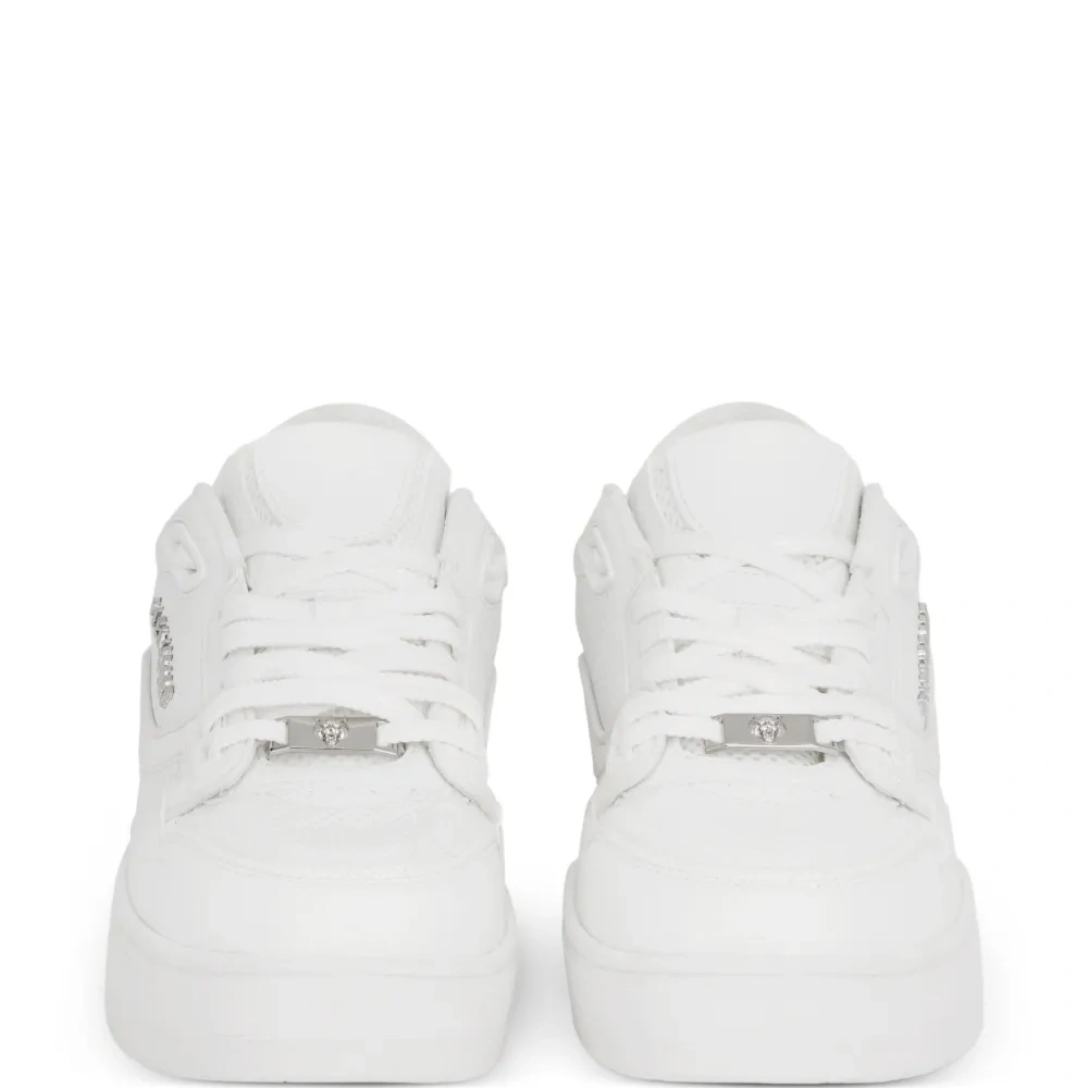 белые ленты-шнурки с никелированными вставками, надписи, рифлёная подошва