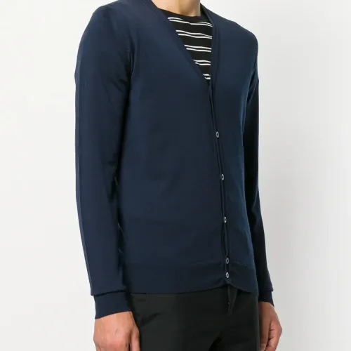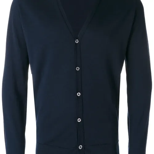 Темно-синий кардиган с V-образным вырезом из мериносовой шерсти от John Smedley.