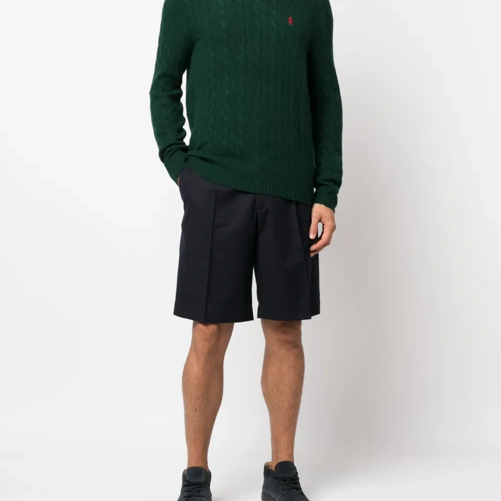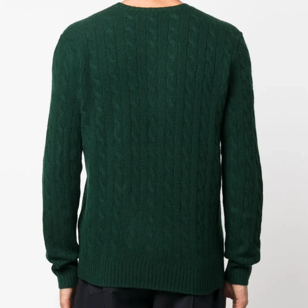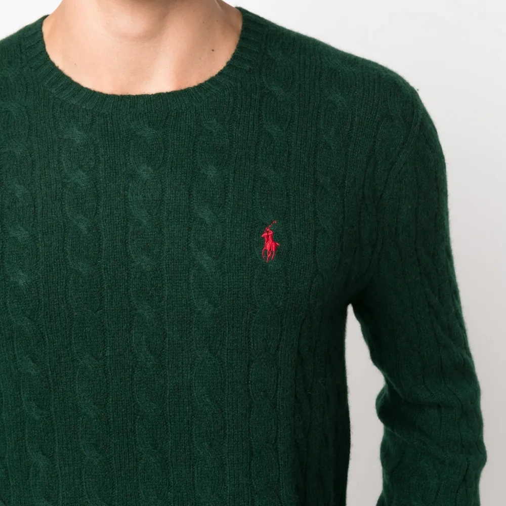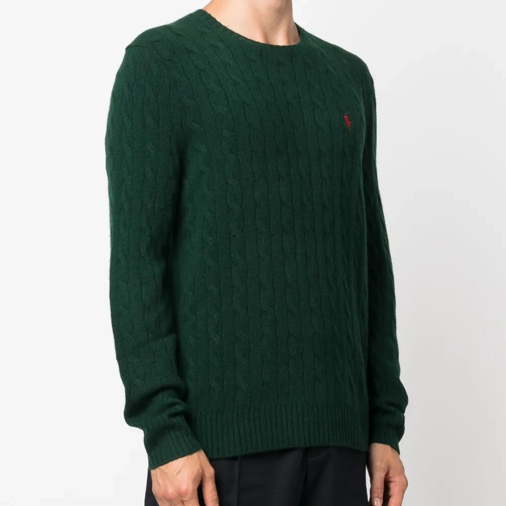 Насыщенный зеленый, кашемир, фактурная вязка, знаковый логотип Polo Pony, вышитый логотип на груди, круглый вырез, длинные рукава и прямой подол.